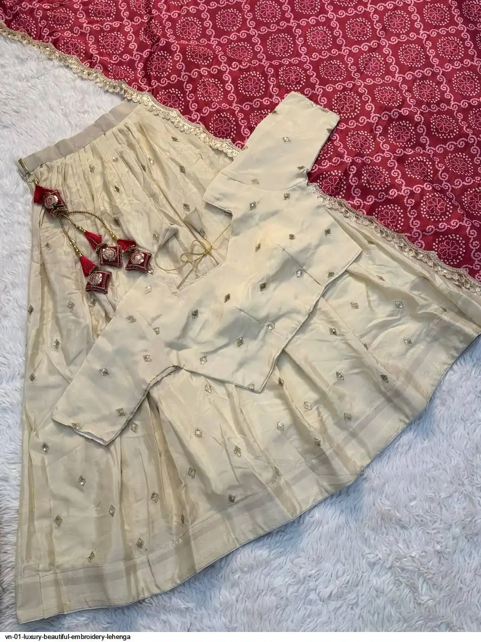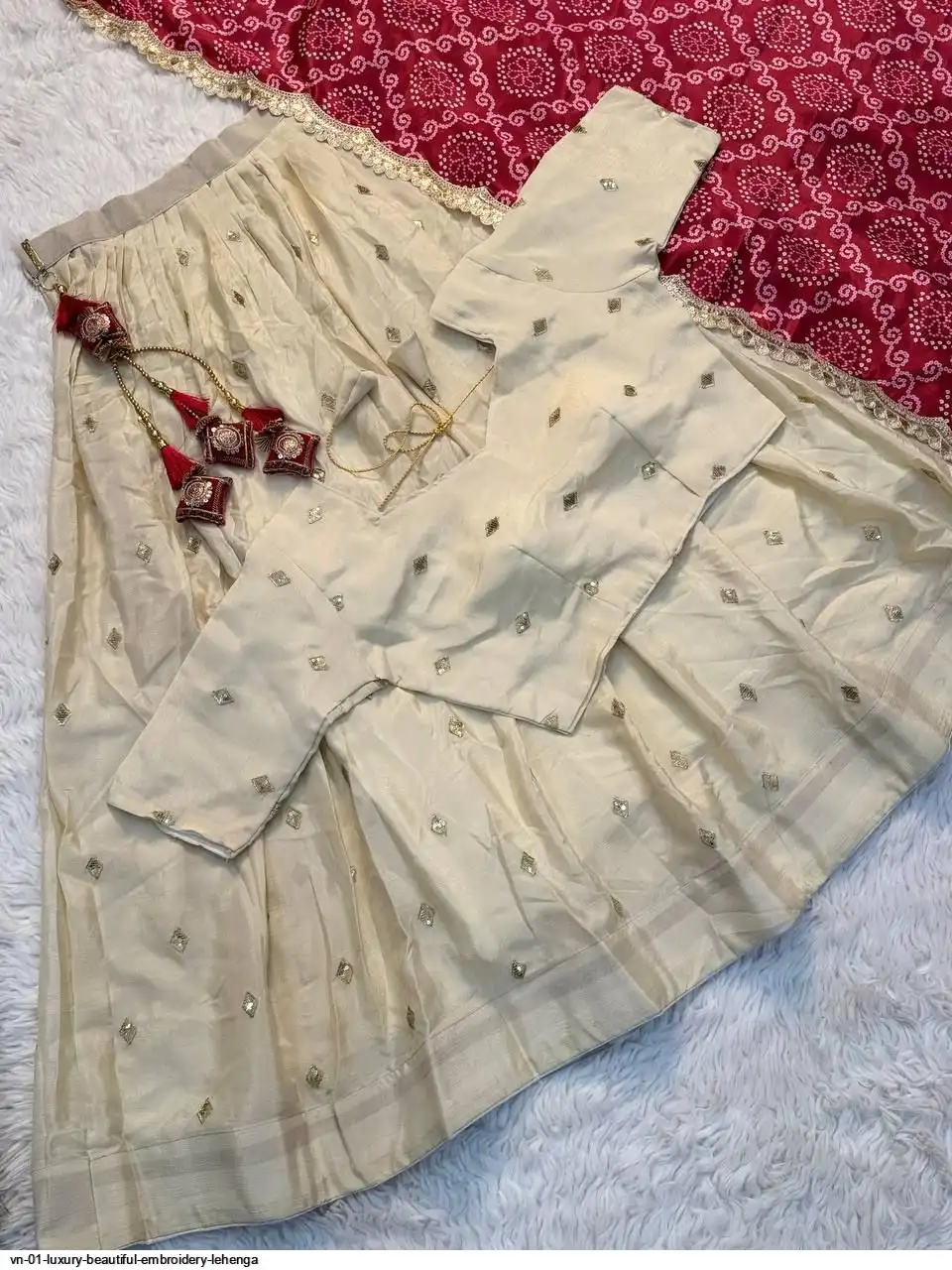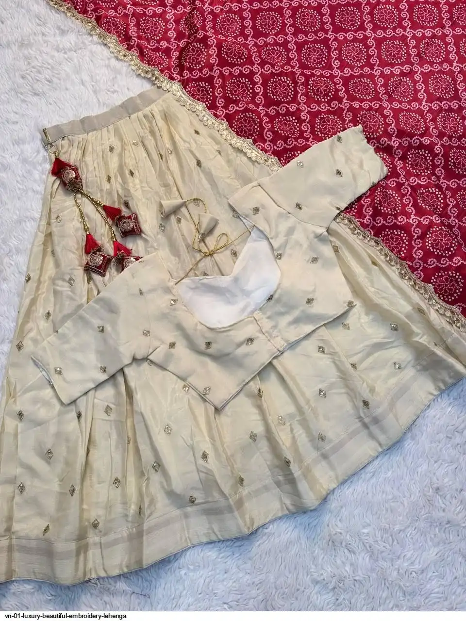 Soft Chinnon Silk with Designer Lehenga with Flower Embroidery at Daaman and Waist and Allover Butti Work