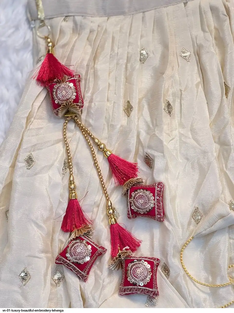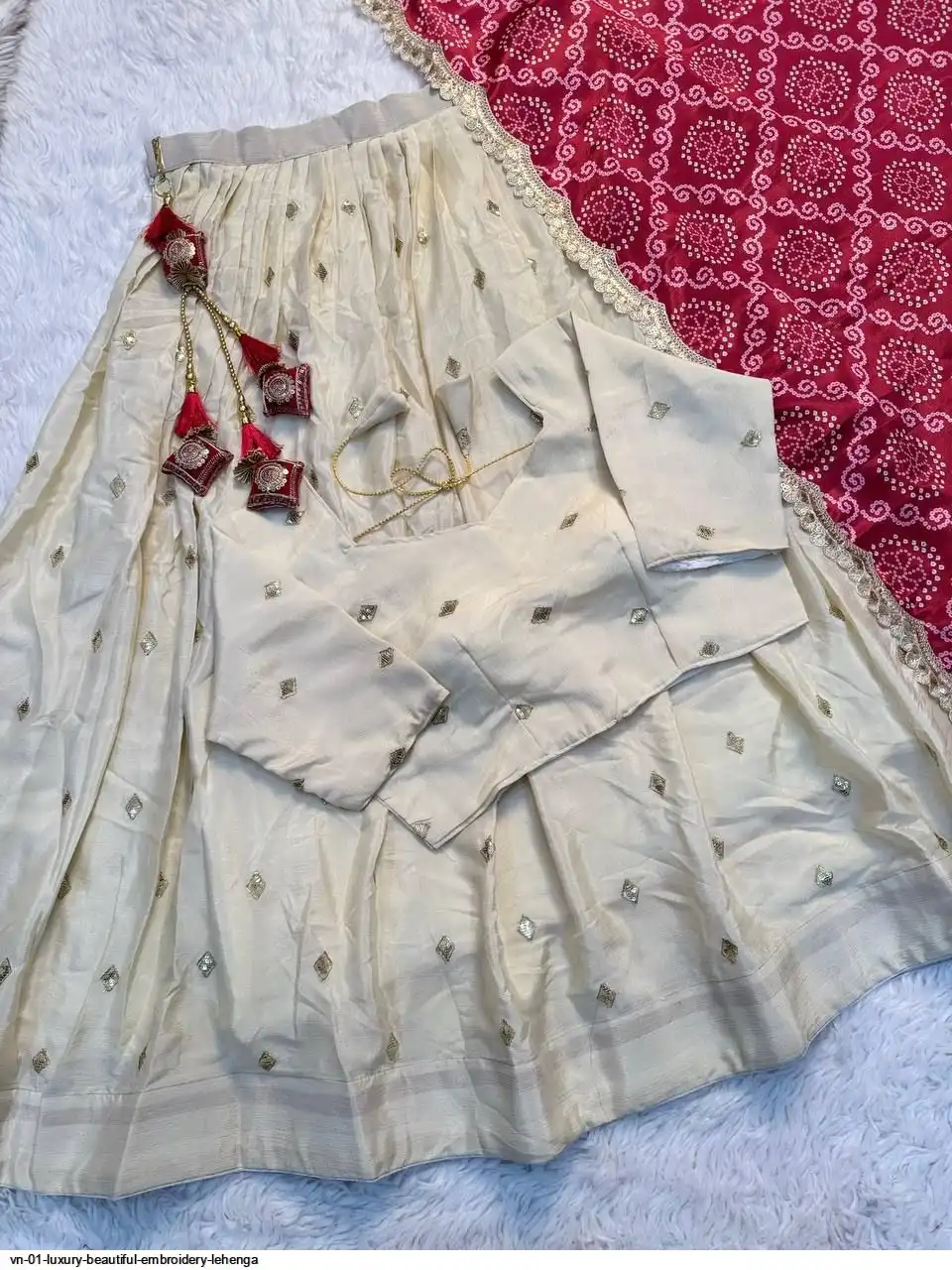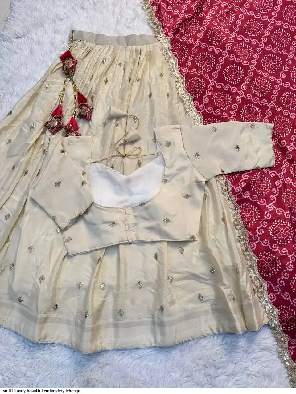 Soft Chinnon Silk with Designer Lehenga with Flower Embroidery at Daaman and Waist and Allover Butti Work
