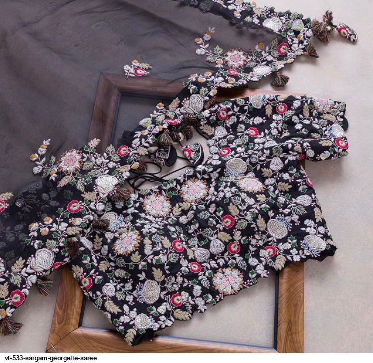 *Blouse :-Faux Georgette silk with Multi colour thread work