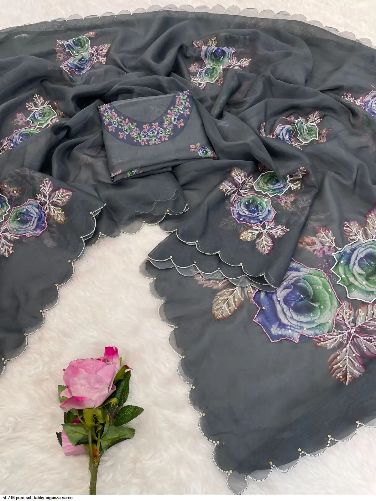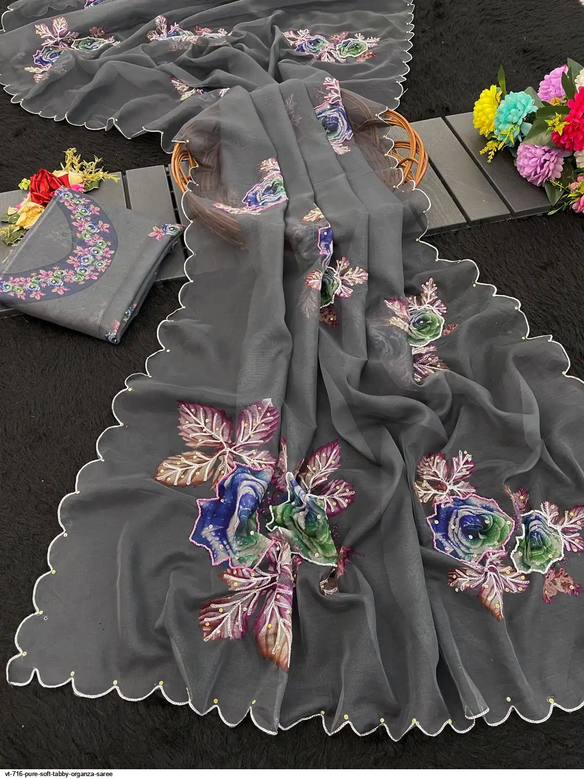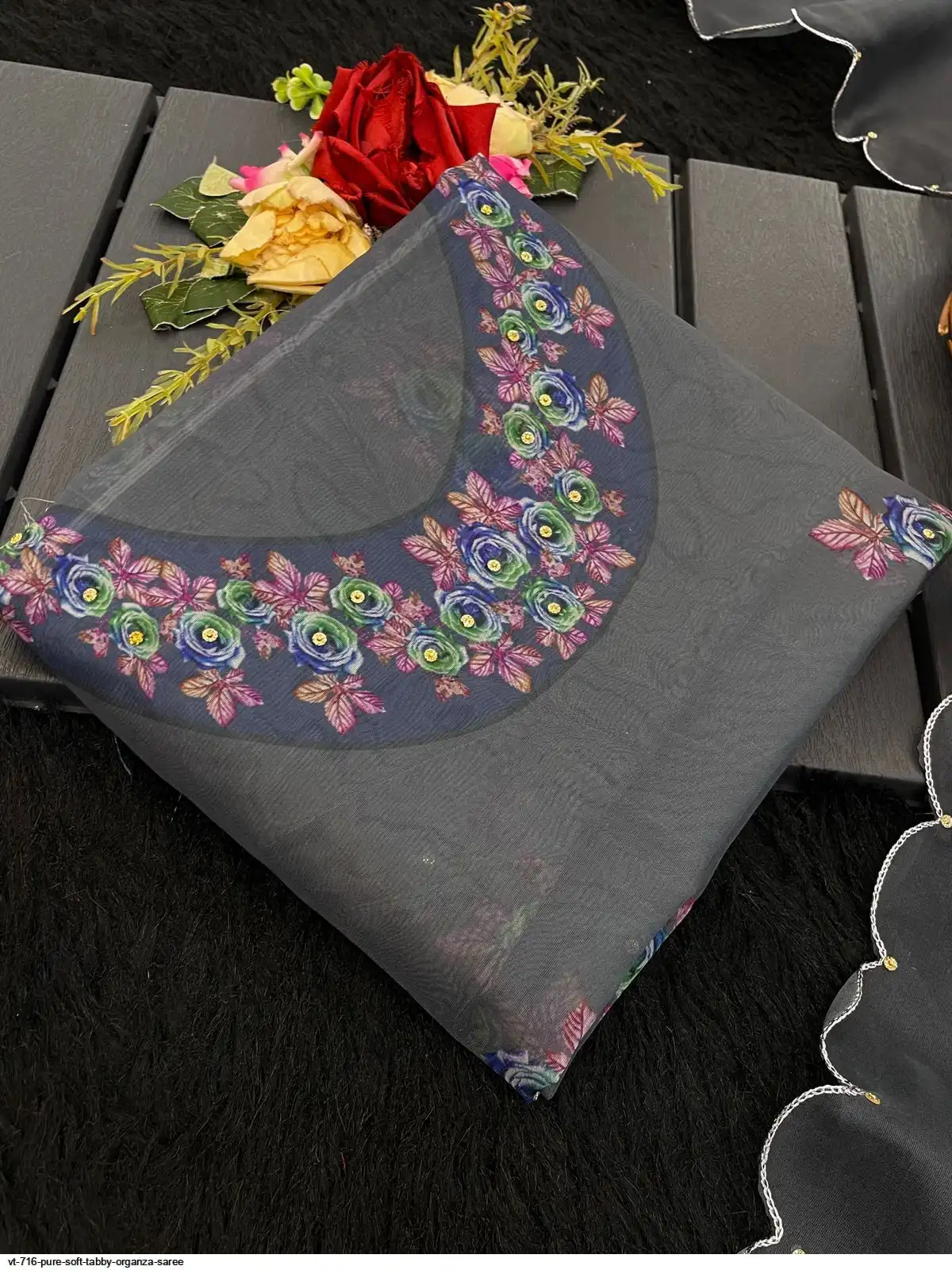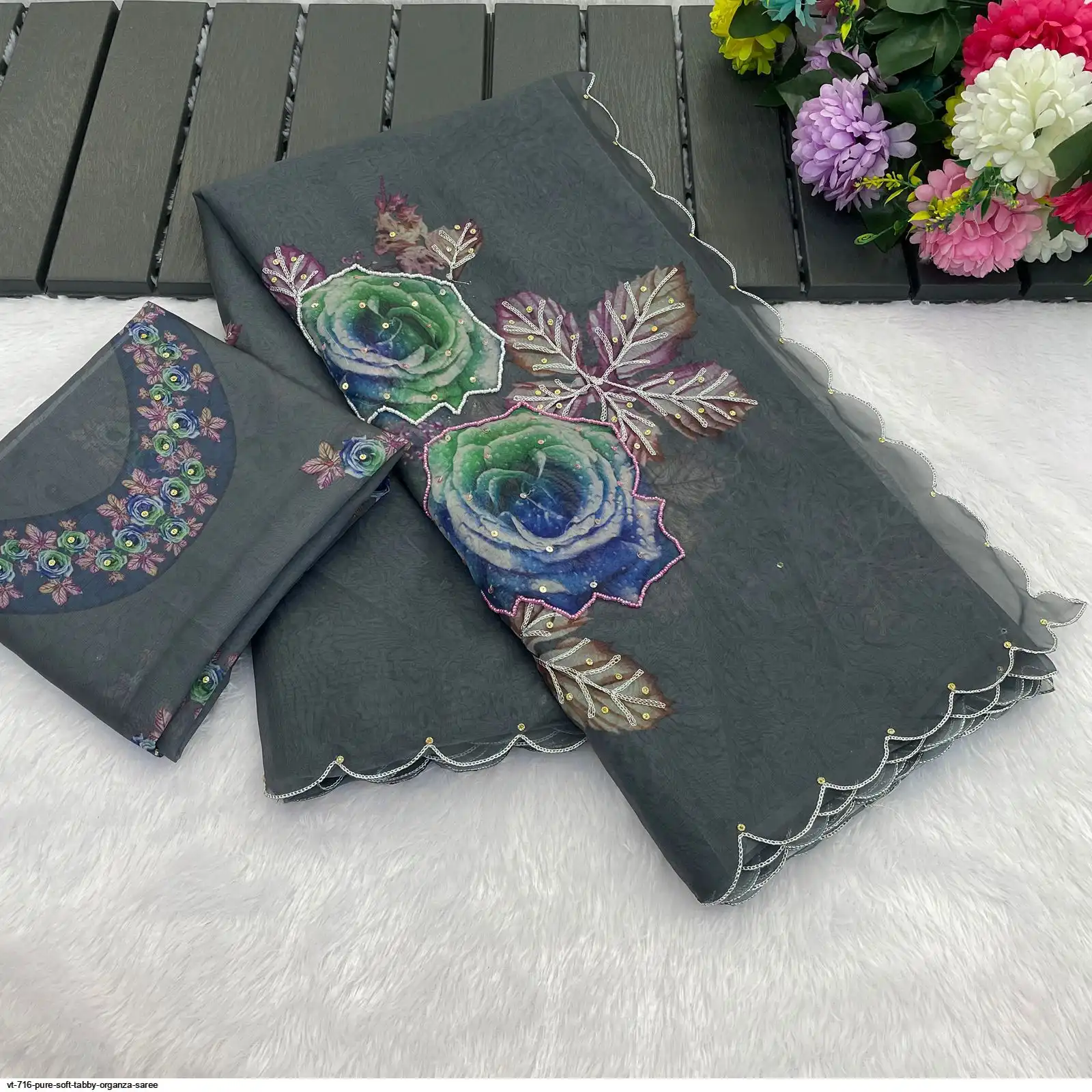 SAREES FABRICS:-Pure Soft tabby orgenza with digital print and Khatli work and stone attched