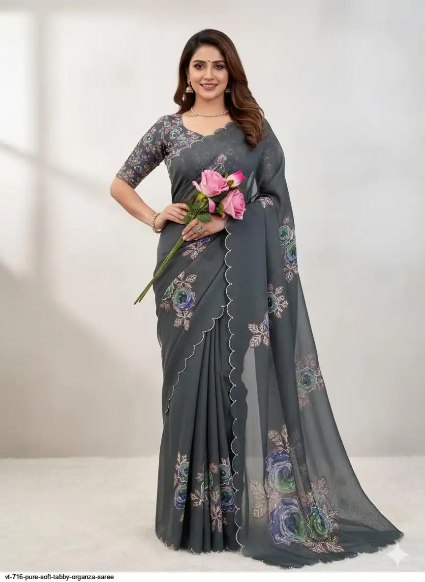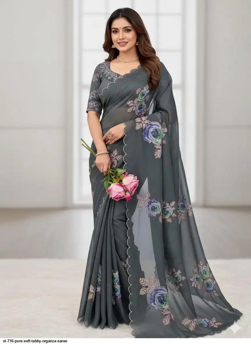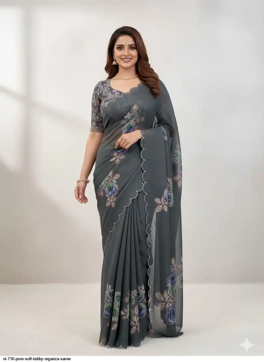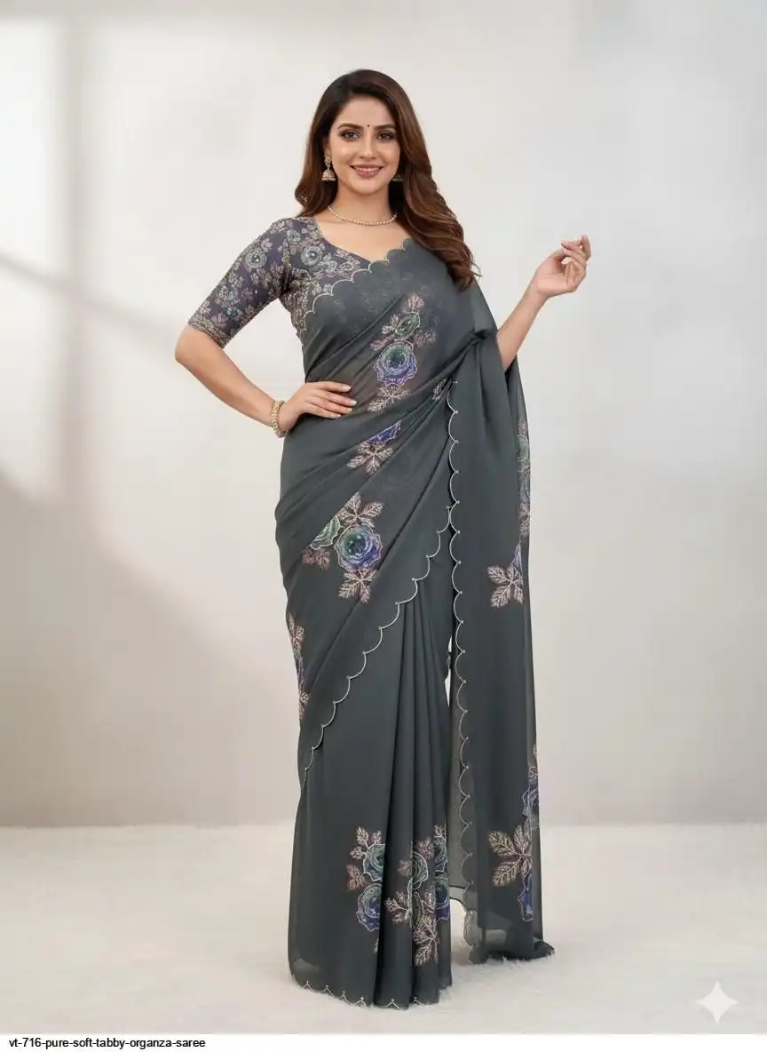 SAREES FABRICS:-Pure Soft tabby orgenza with digital print and Khatli work and stone attched