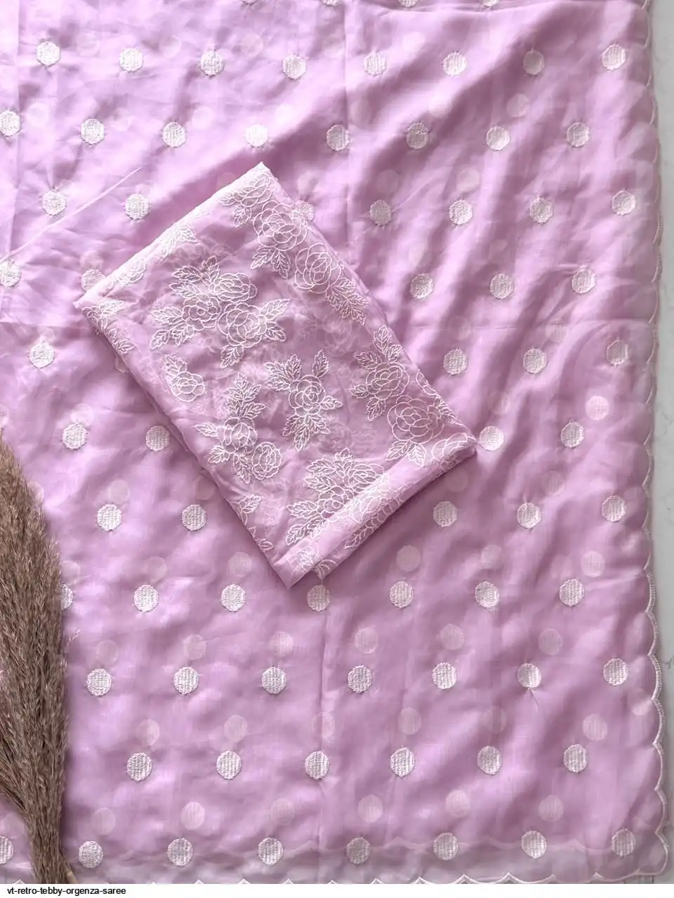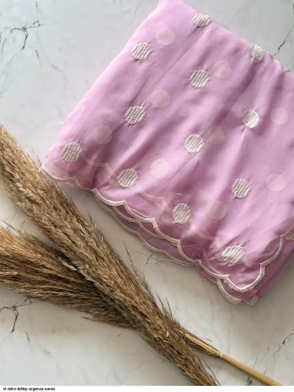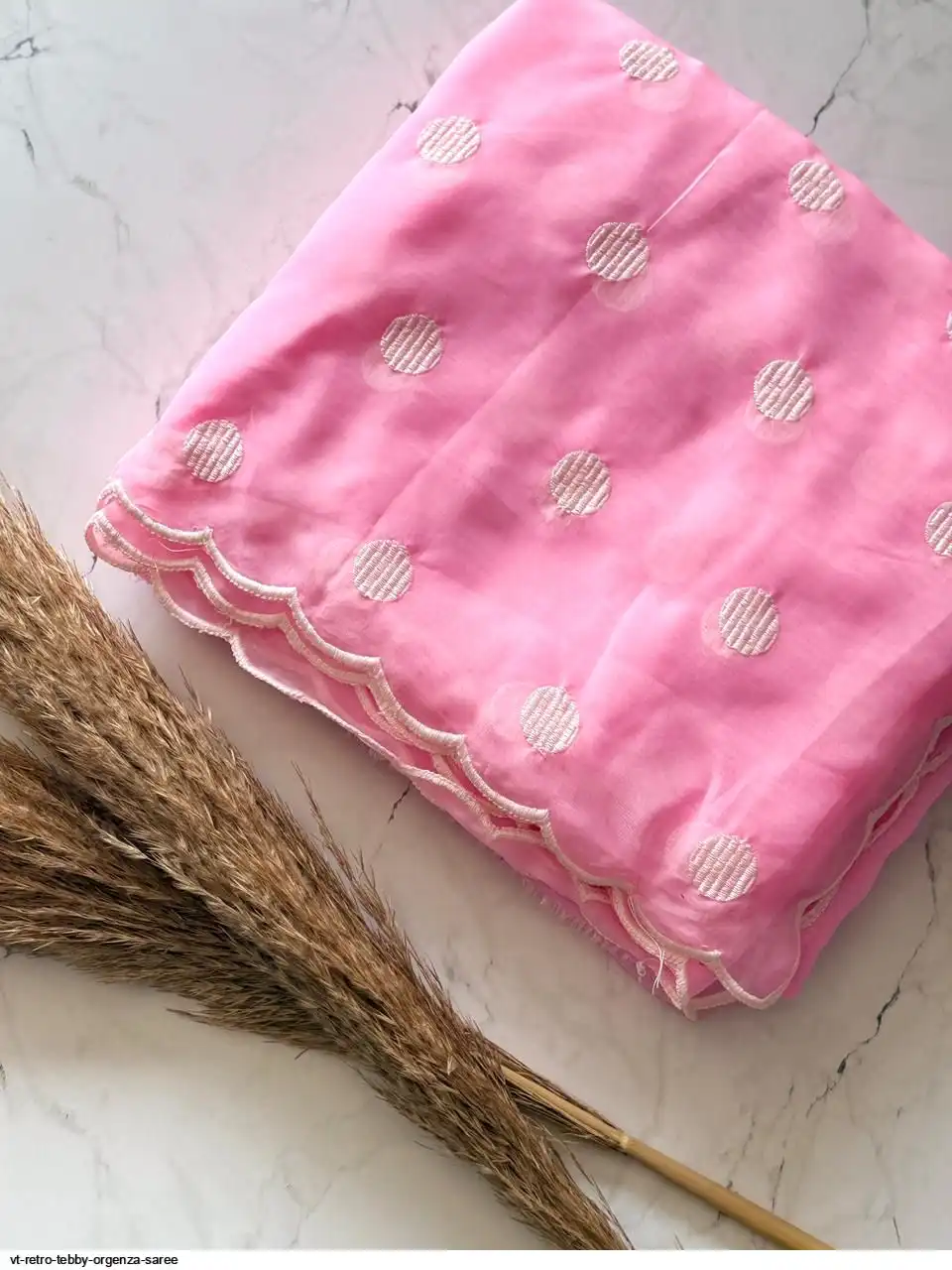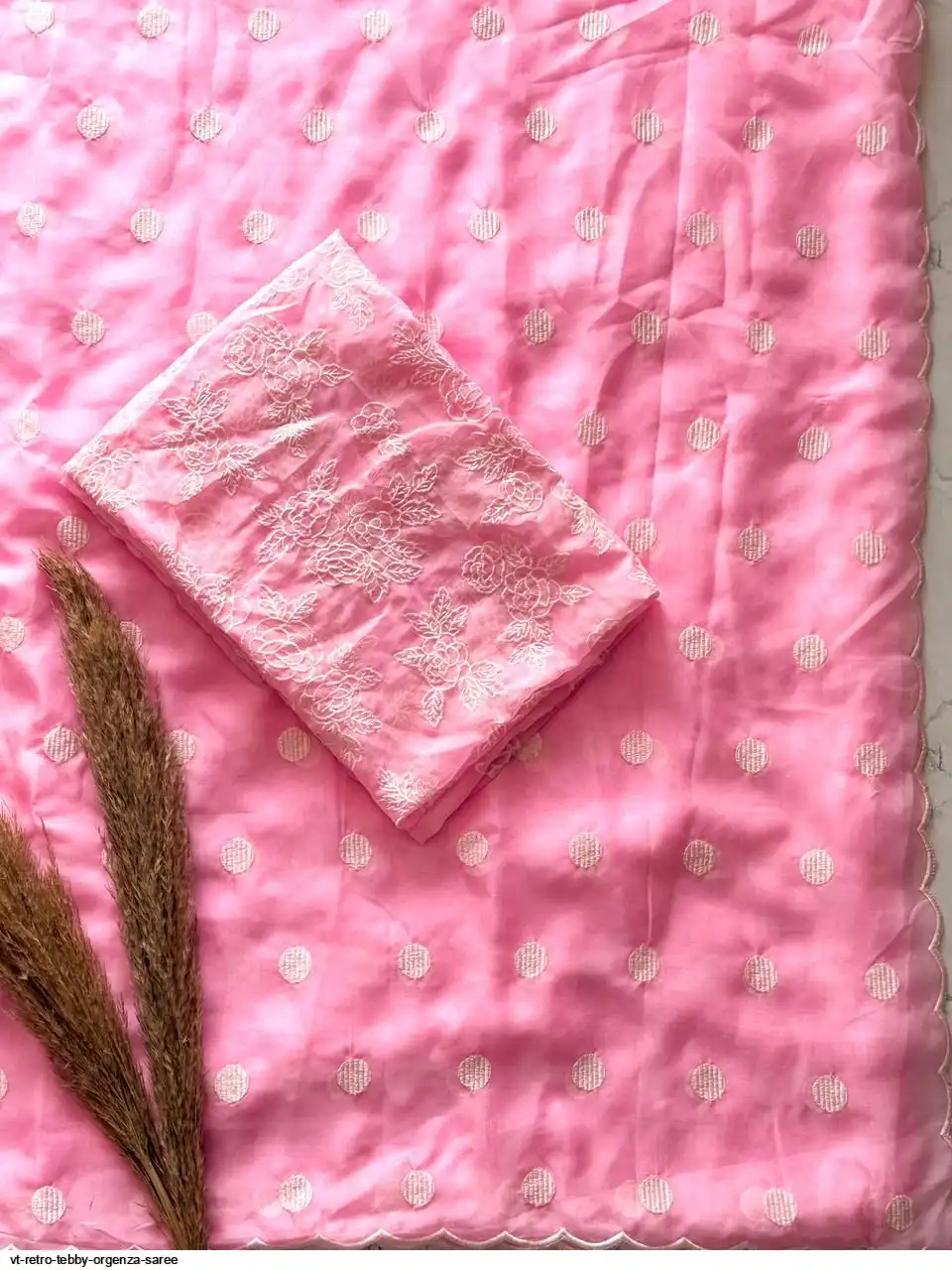 Primium Tebby Orgenza With Polka Dot Thread Work And Scalp Border