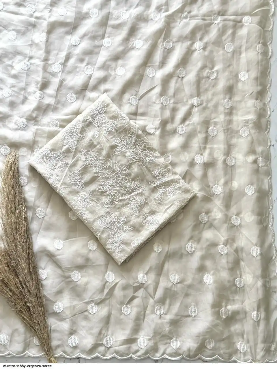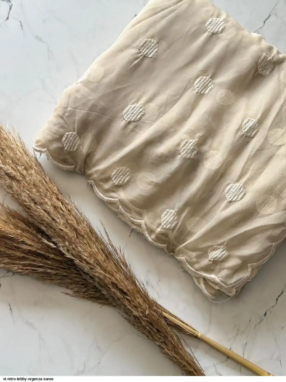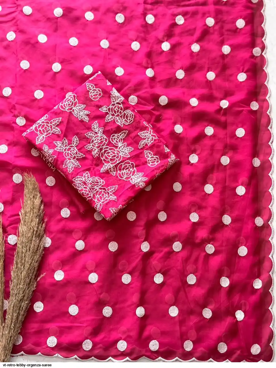 Primium Tebby Orgenza With Polka Dot Thread Work And Scalp Border