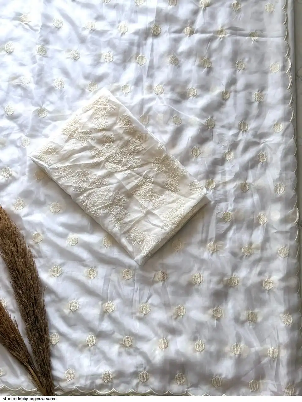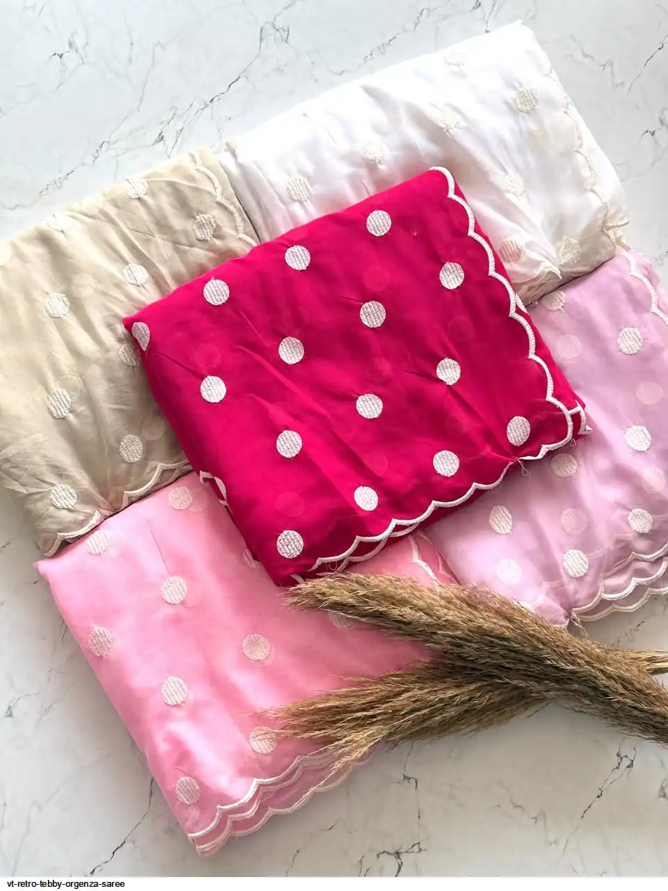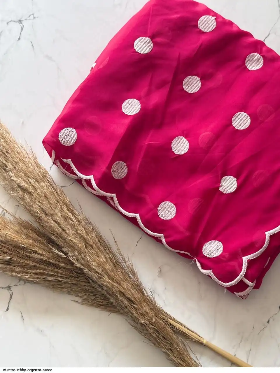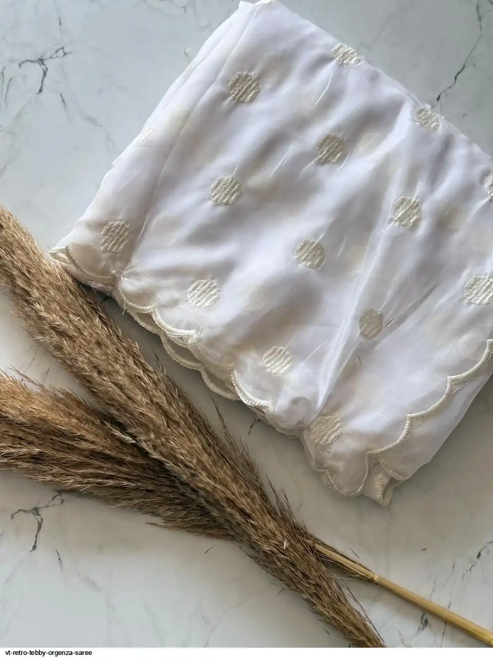 Primium Tebby Orgenza With Polka Dot Thread Work And Scalp Border