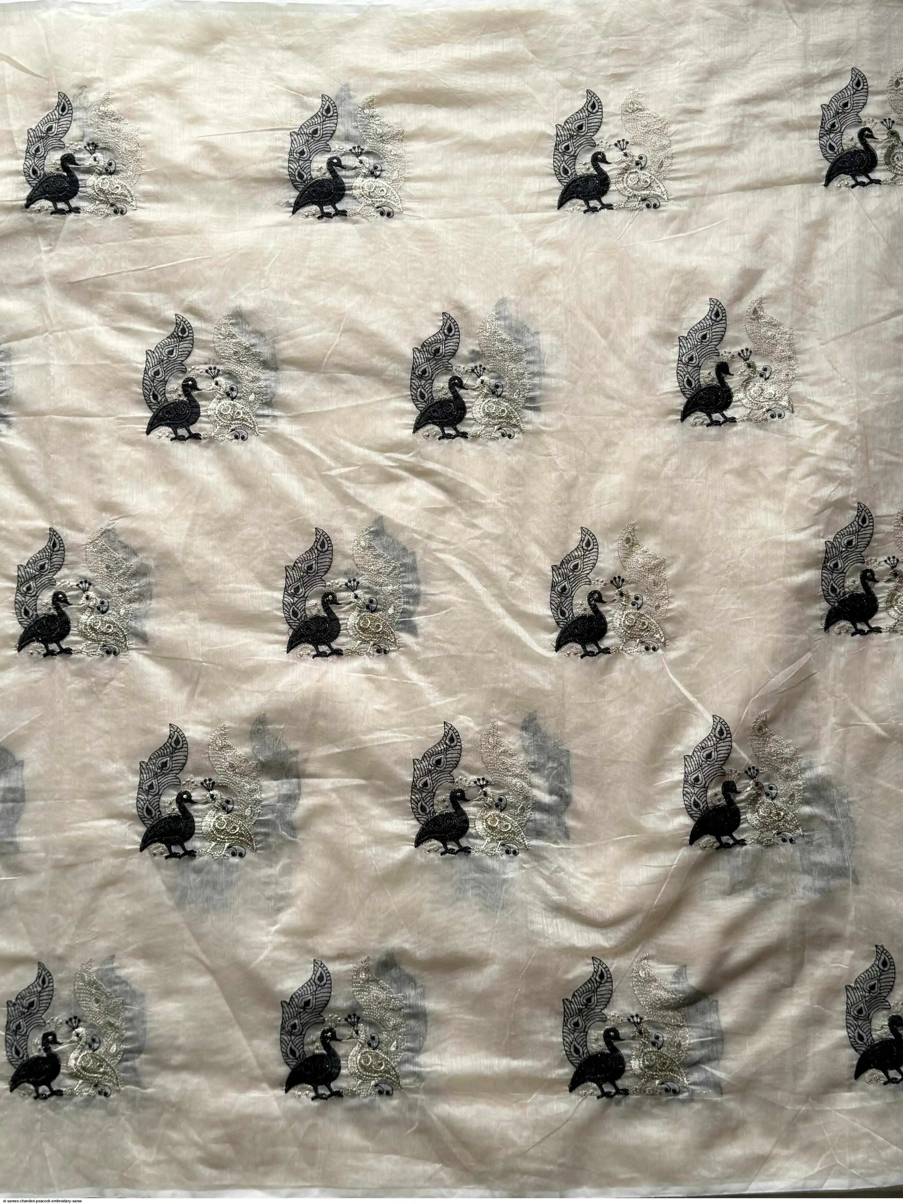 Premium chanderi saree with peacock embroidary work on all over the saree