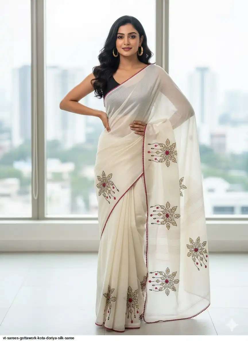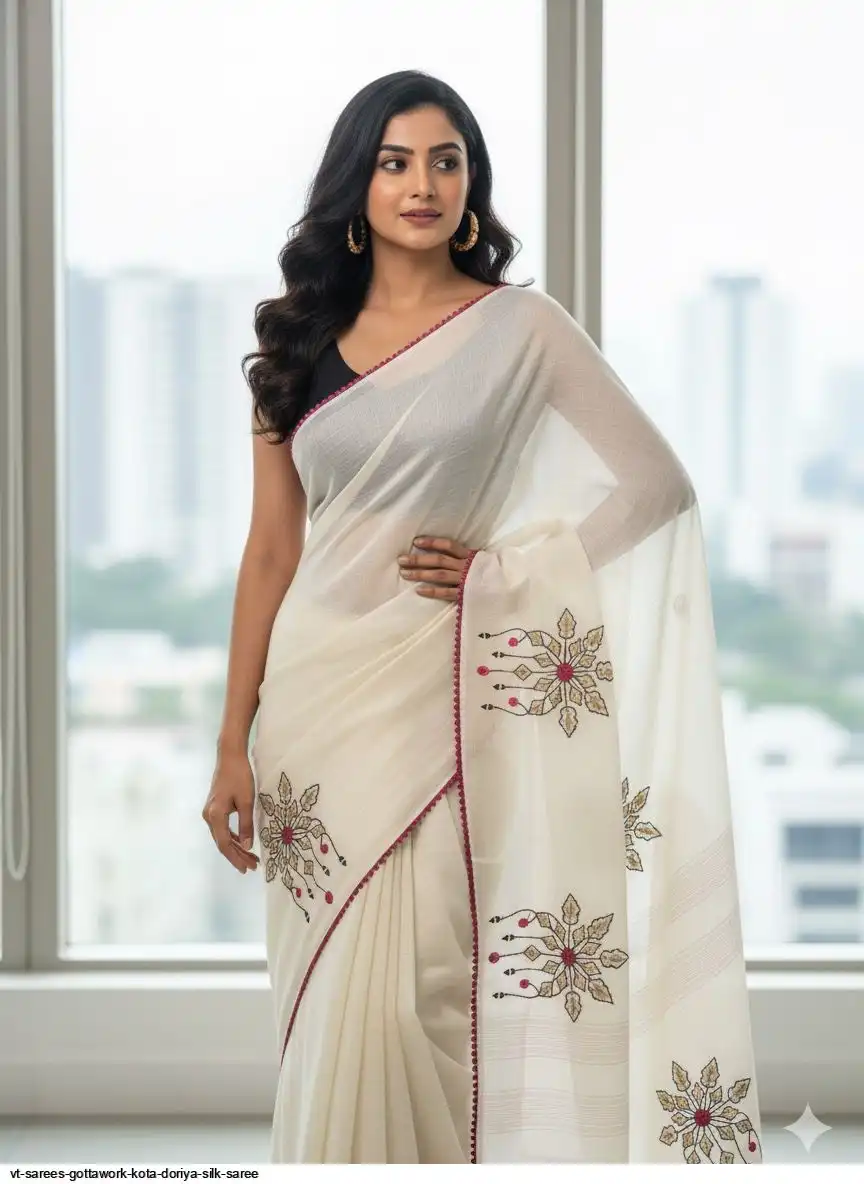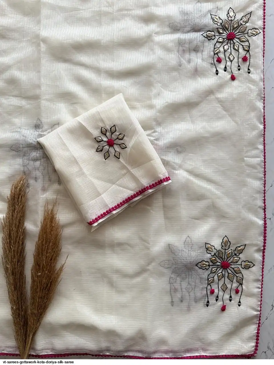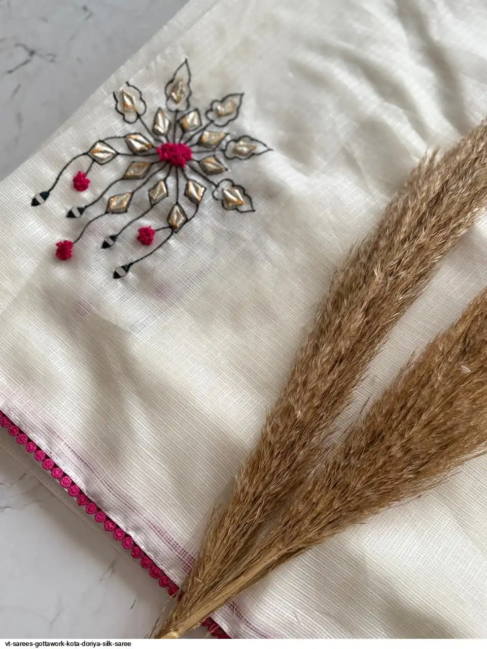 Primium Kota Doriya silk With Gpo Lace Border Contast And Knot and Gotta Work all over saree
