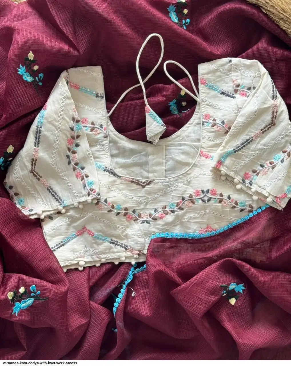 Primium Kota Doriya With Knot Work And GOP lace Border