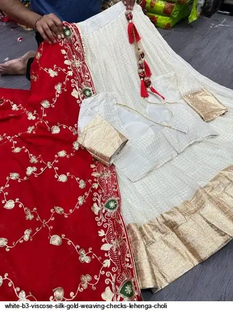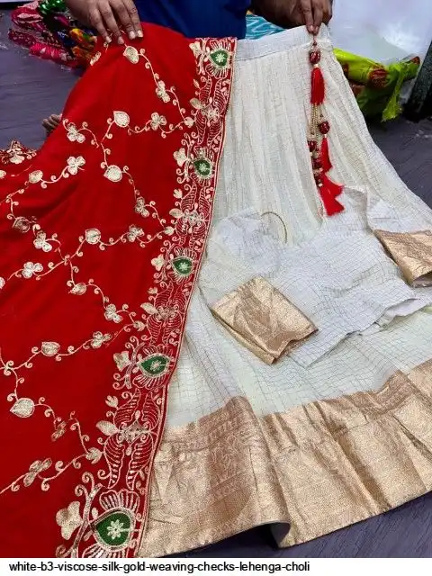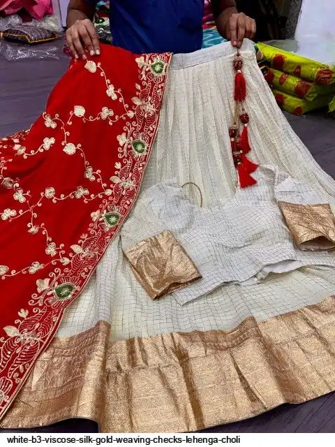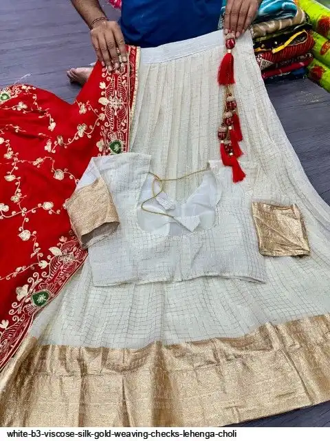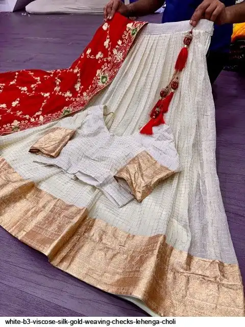 Viscose silk with designer lehenga with golden Daaman patta weaving and waist and allover Gold weaving chex