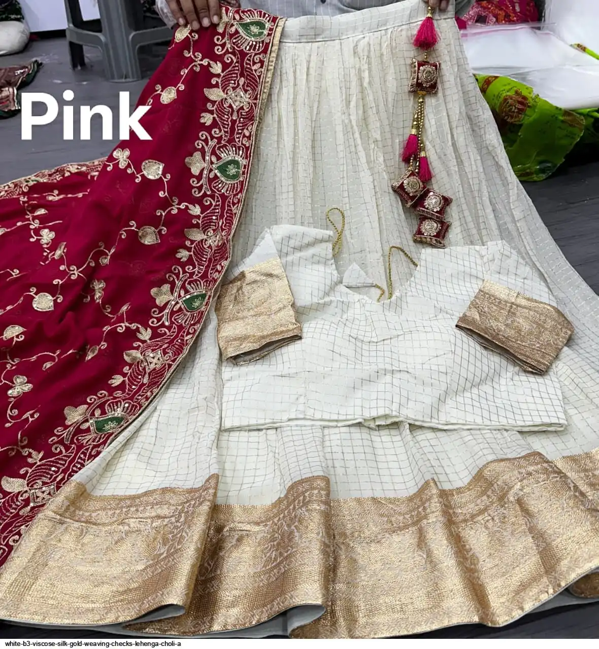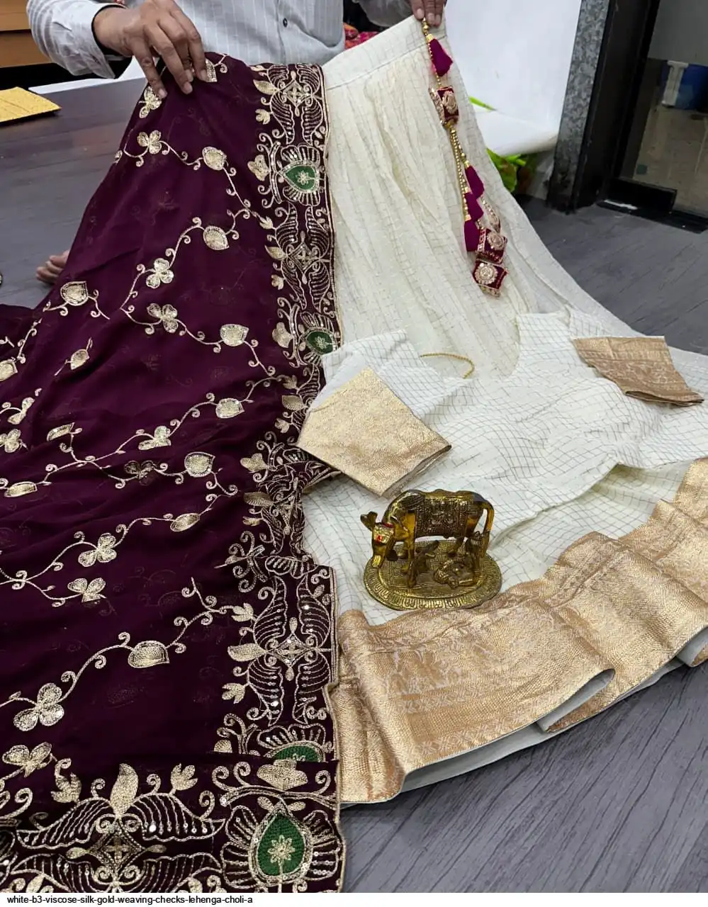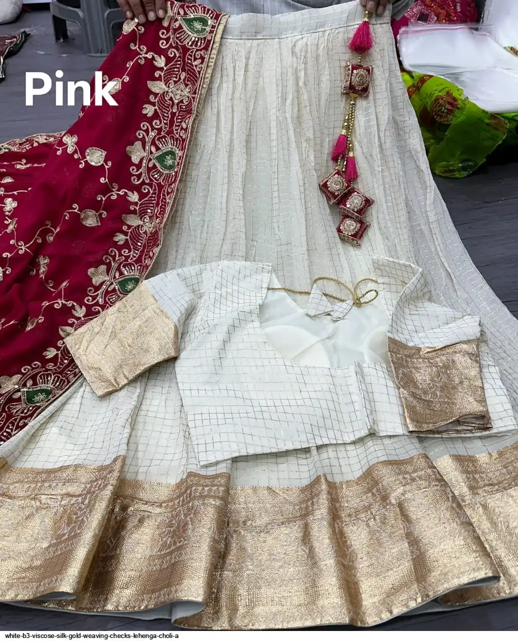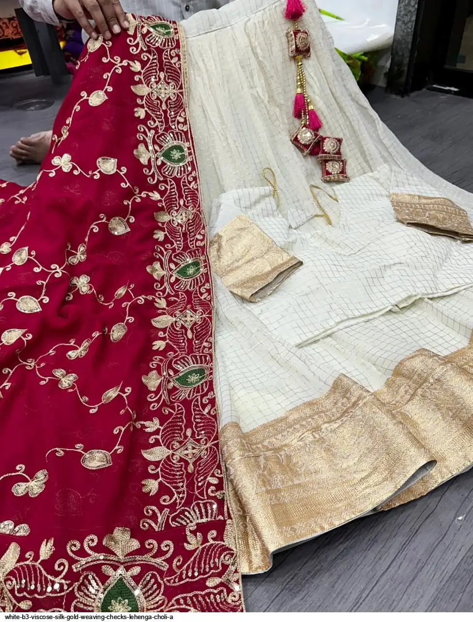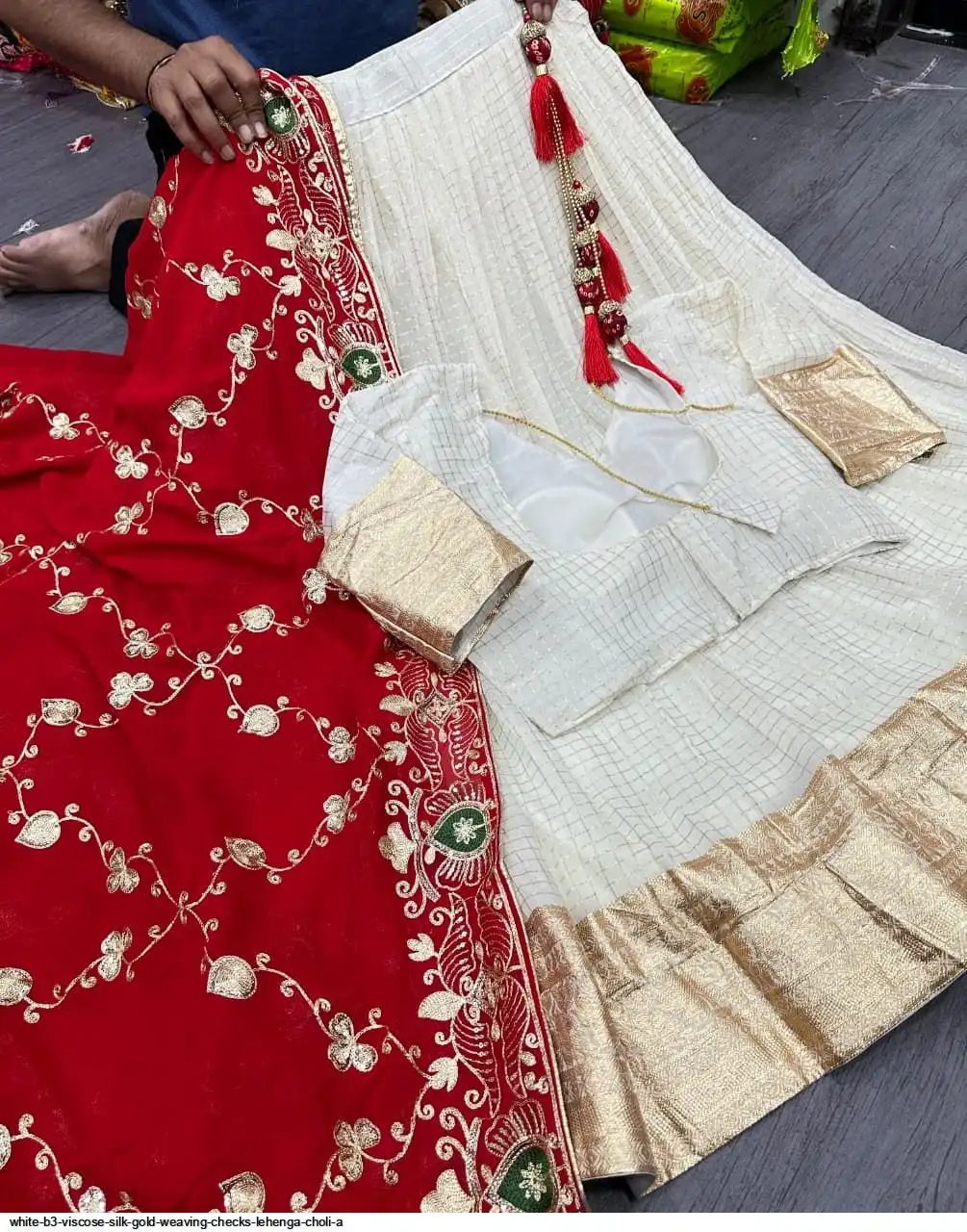 Viscose silk with designer lehenga with golden Daaman patta weaving and waist and allover Gold weaving chex