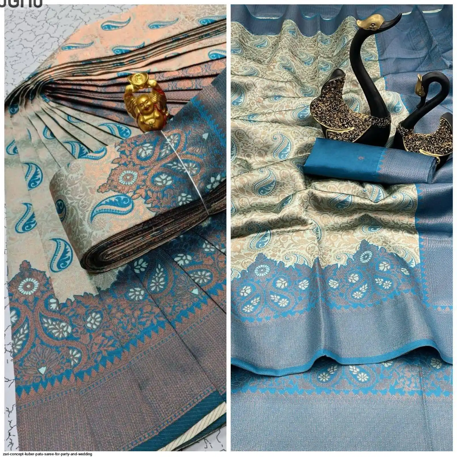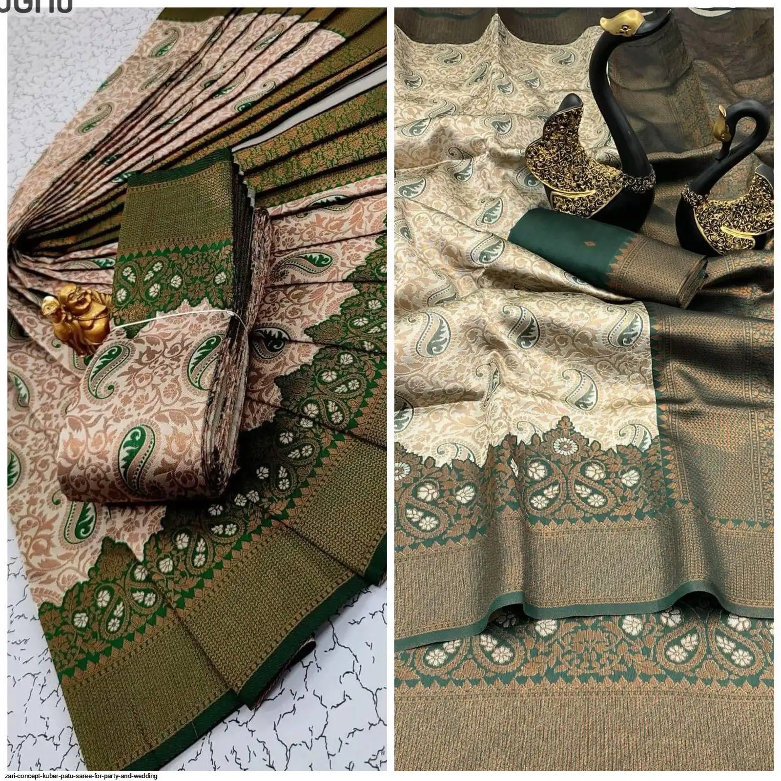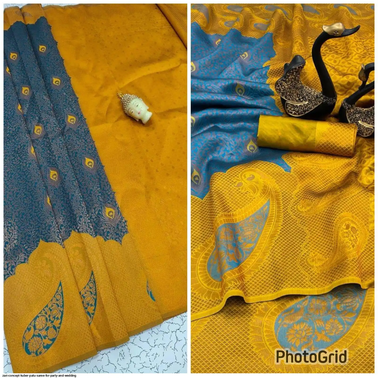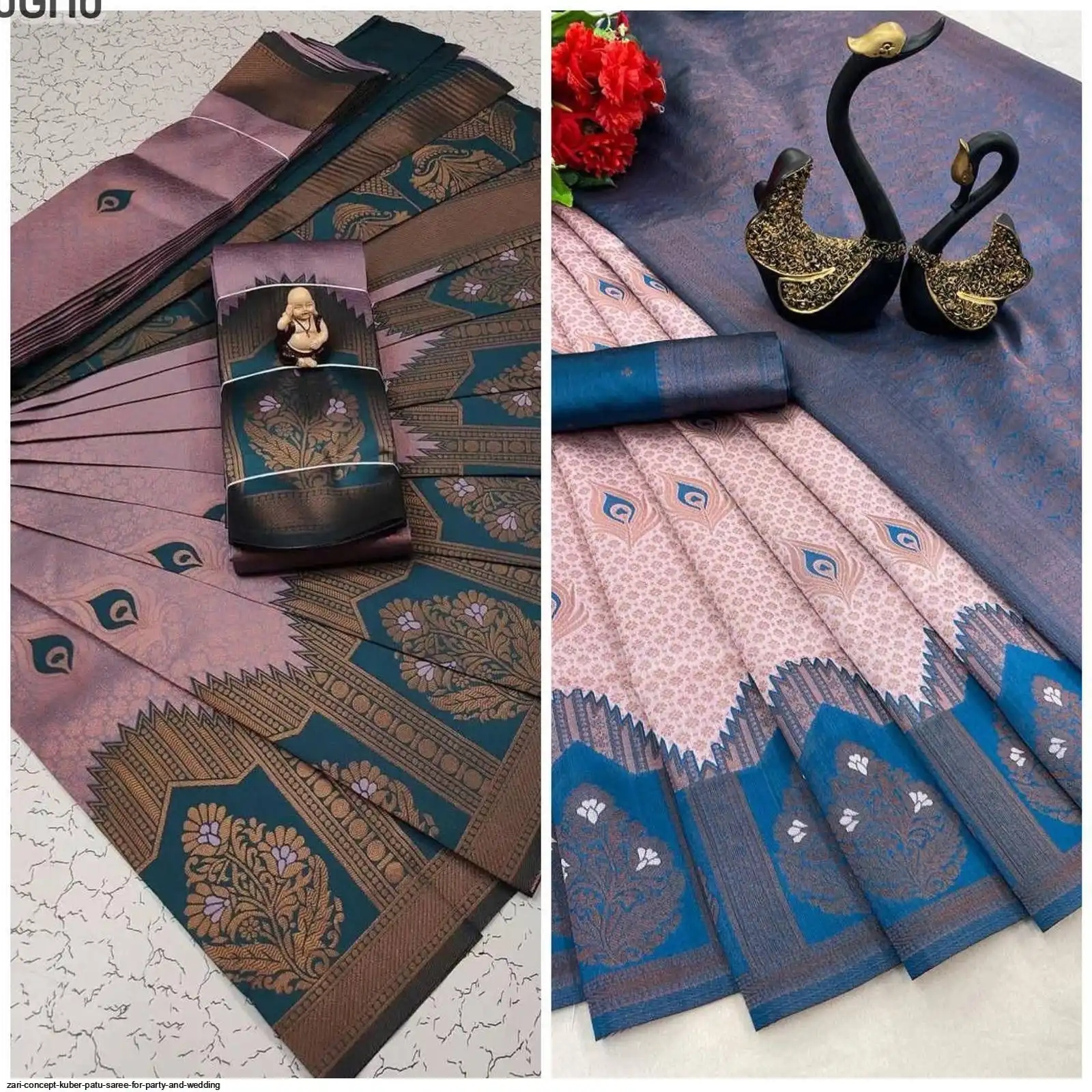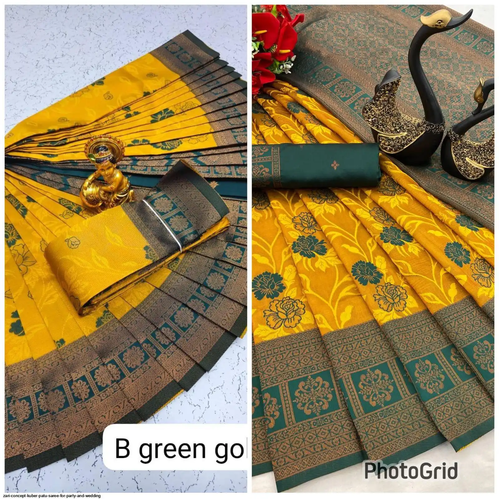 Most Stunning Triple Weaving Zari Concept Kuber patu Sarees . This concept Sarees is best for Party and wedding Occasion. This Kuber patu Kanchi Sarees is made of Pure Copper Zari and Self Design with contrast Colour Meena makes Sarees Adorable