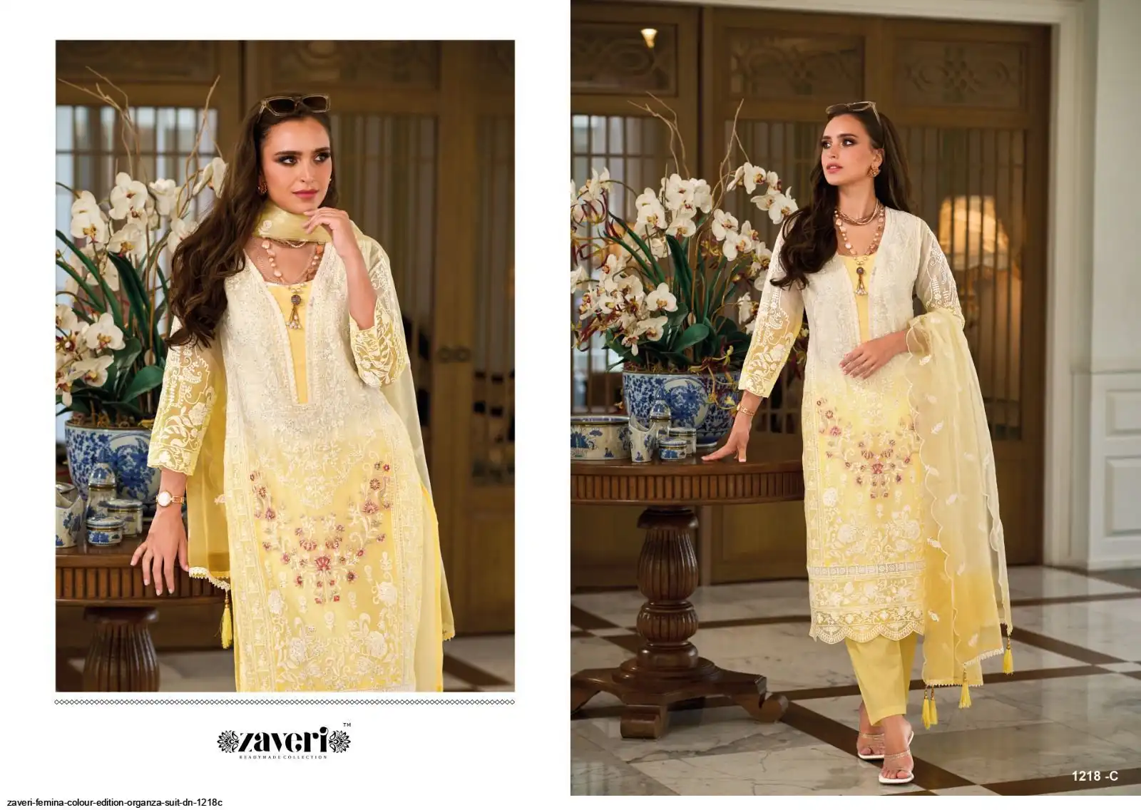 Top - Soft organza with fancy embroidery work with moti work & gpo lace
