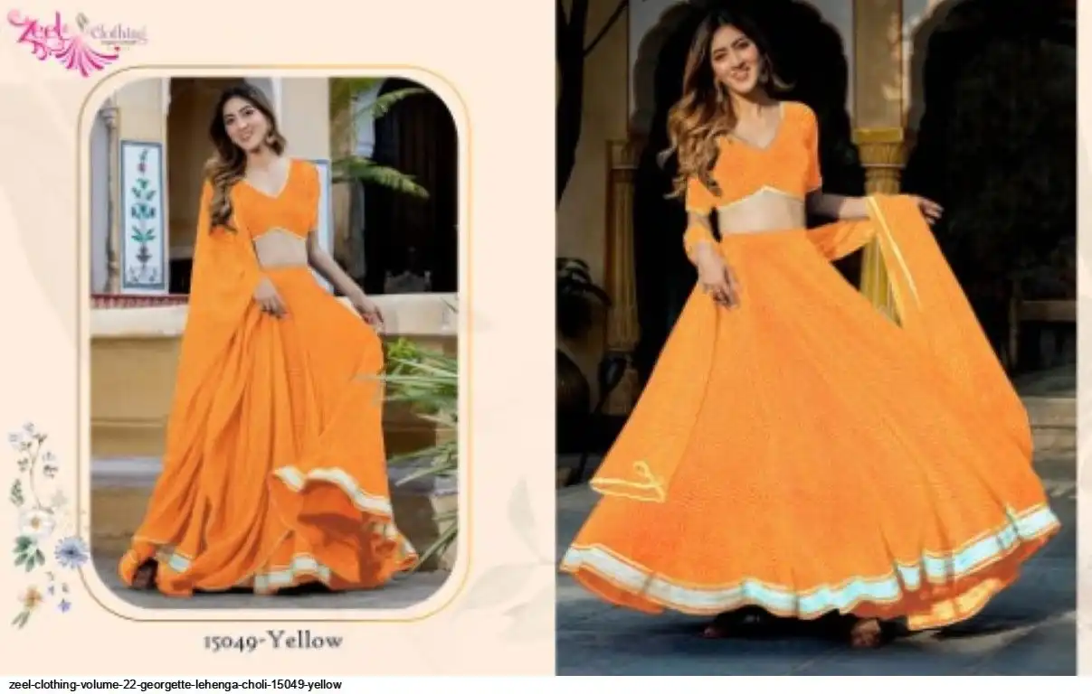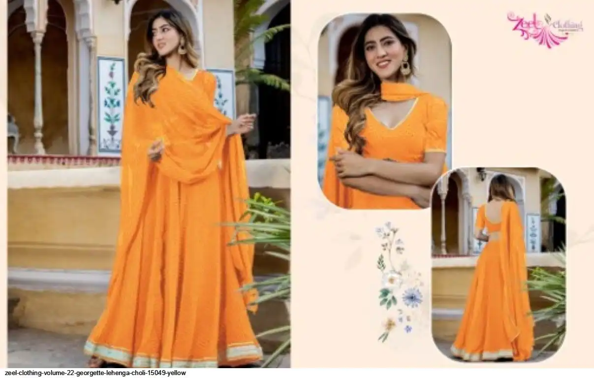 ZEEL CLOTHING VOLUME 22 GEORGETTE LEHENGA CHOLI 15049 YELLOW