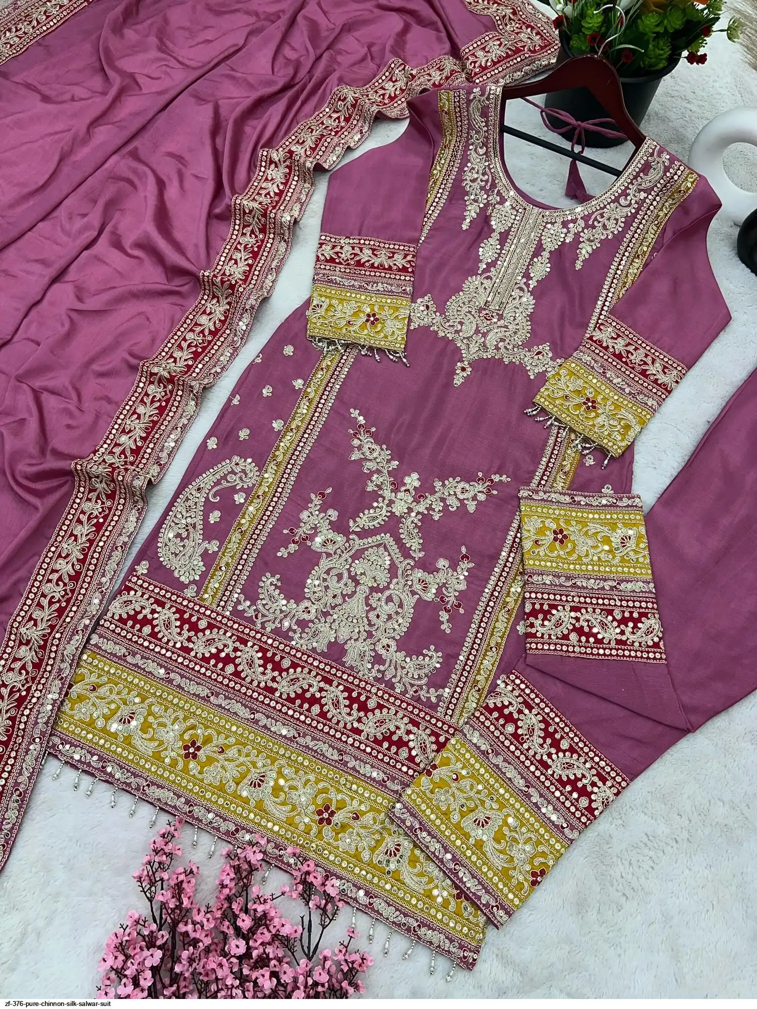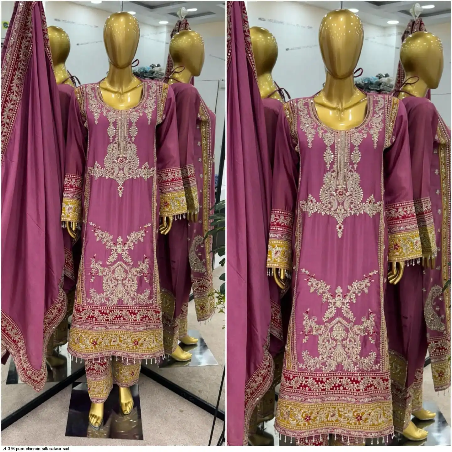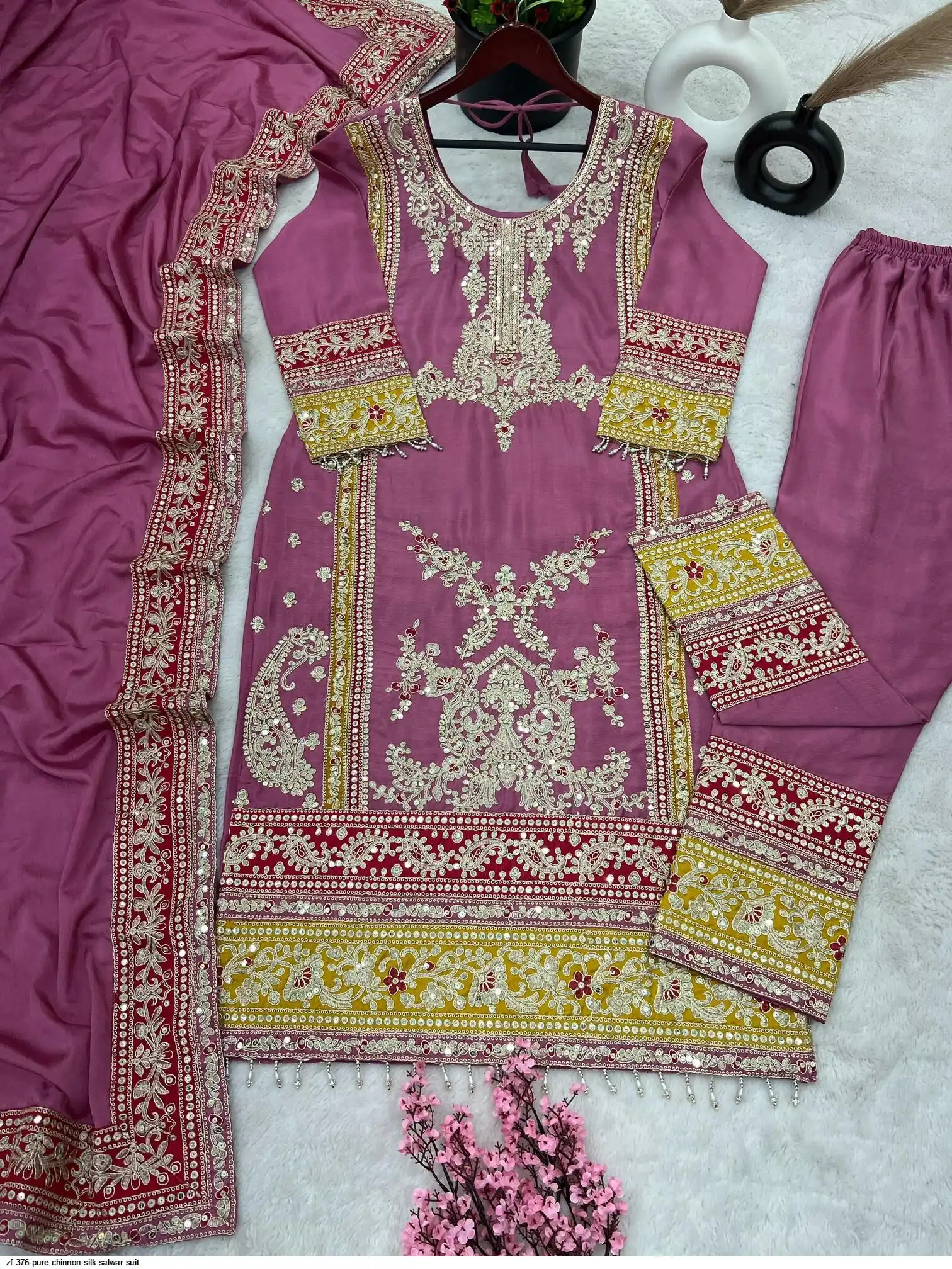 Presenting New Ready-made Collection With Pure Chinnon Silk And Heavy Embroidery Cording Sequence Work Top-Bottom And Dupatta Set Fully Stitched Ready To Wear