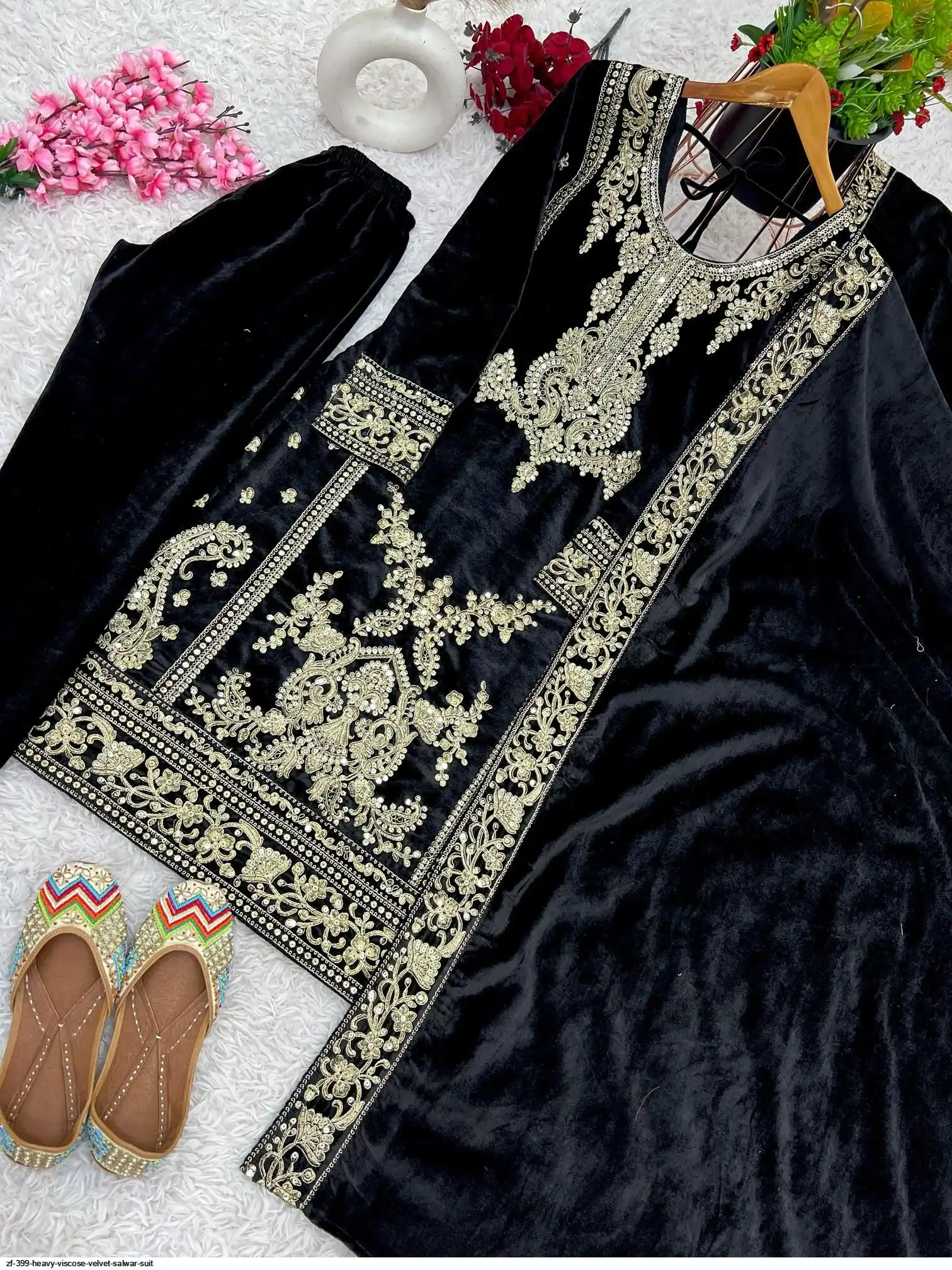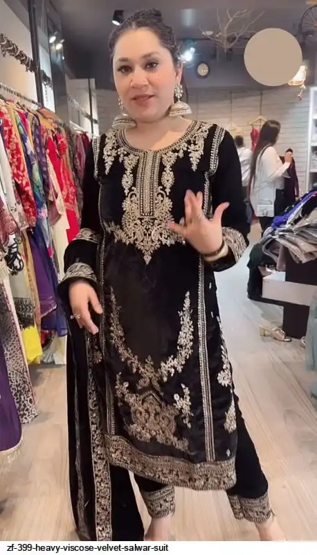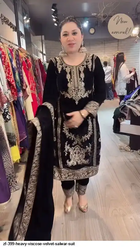 Top Fabric :Heavy Viscose Velvet With Embroidery Cording Sequence Work And Full Sleeve