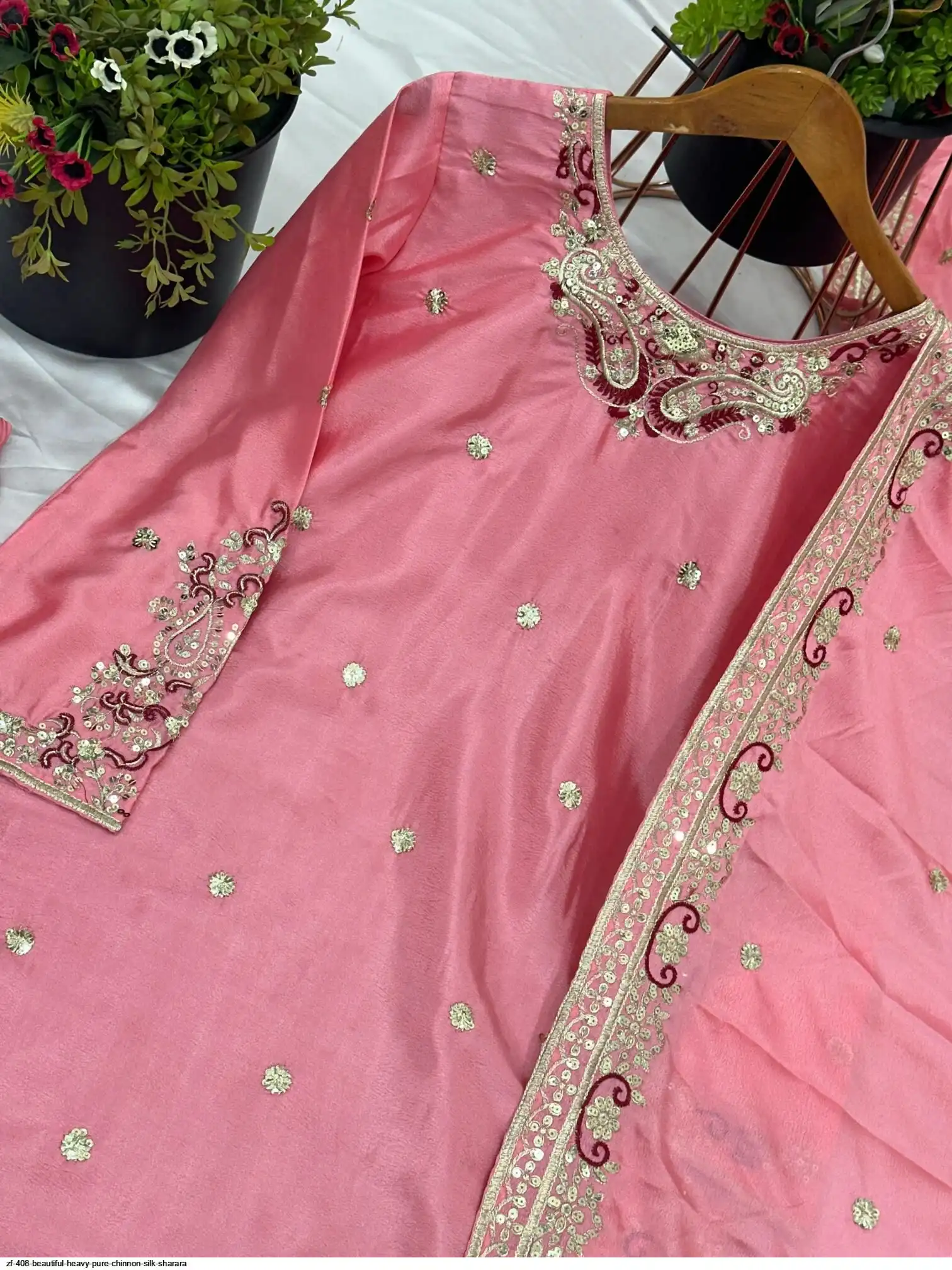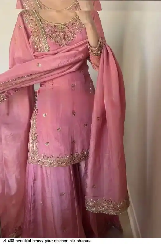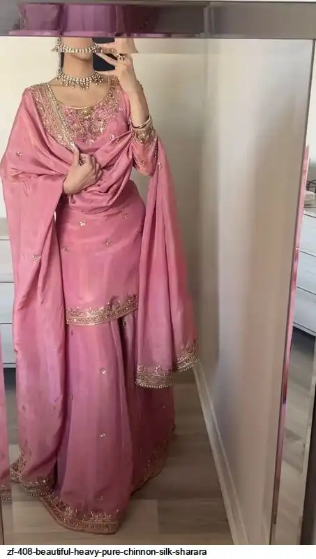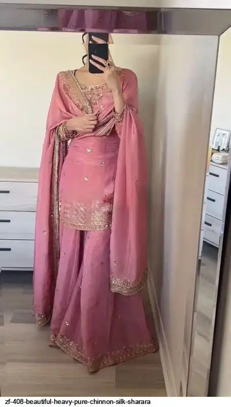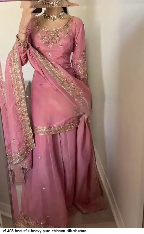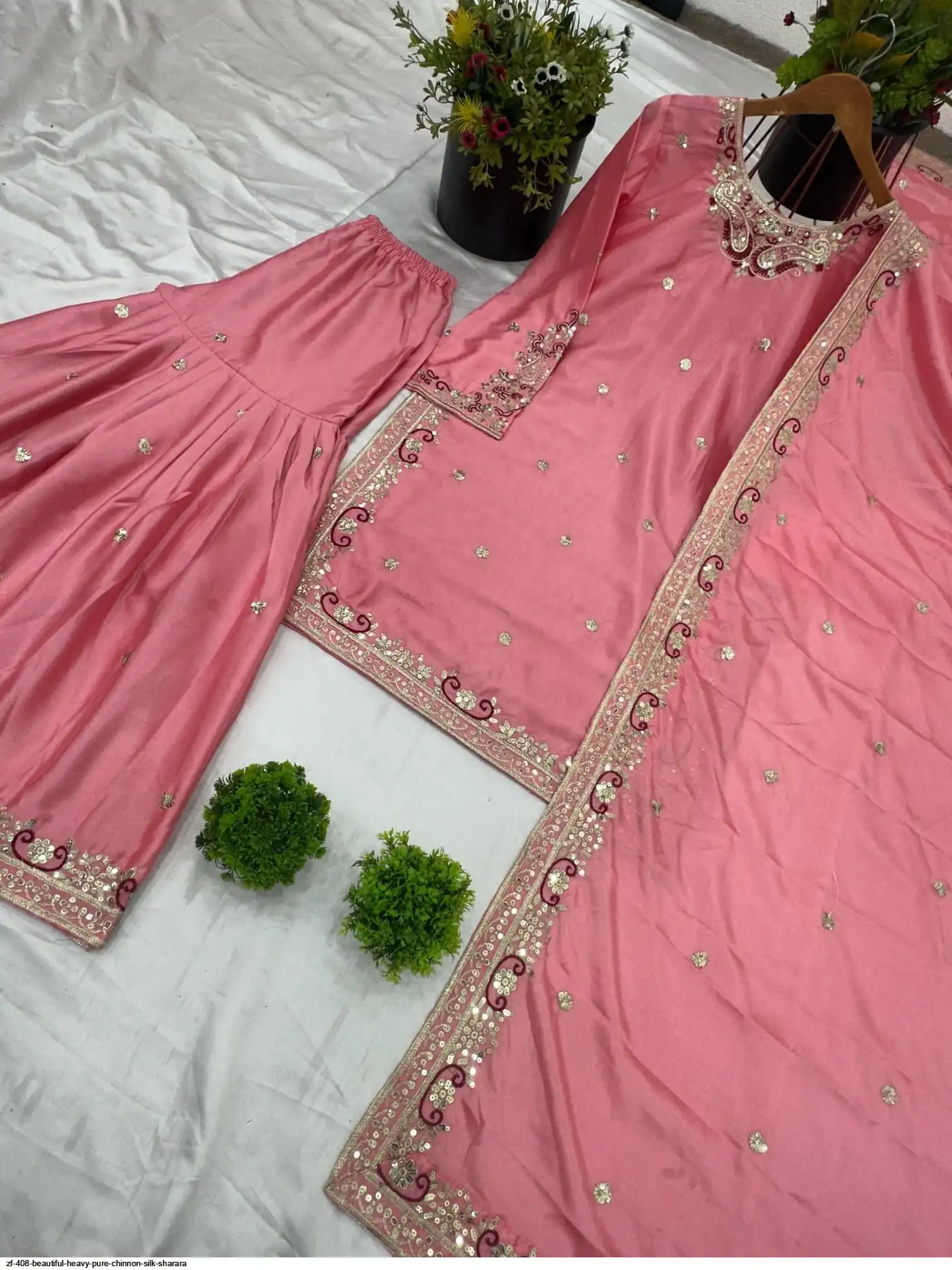 Top Fabric :Heavy Pure Chinnon Silk With 5mm Embroidery Sequence Work With Full Sleeve