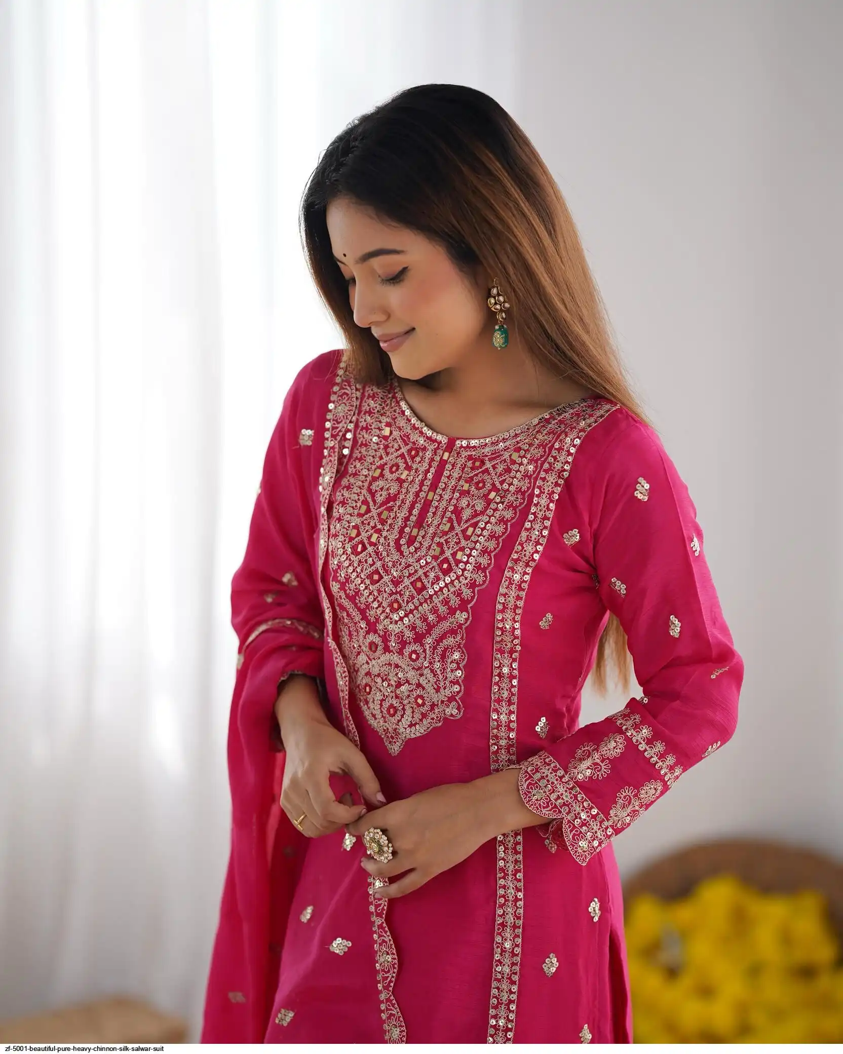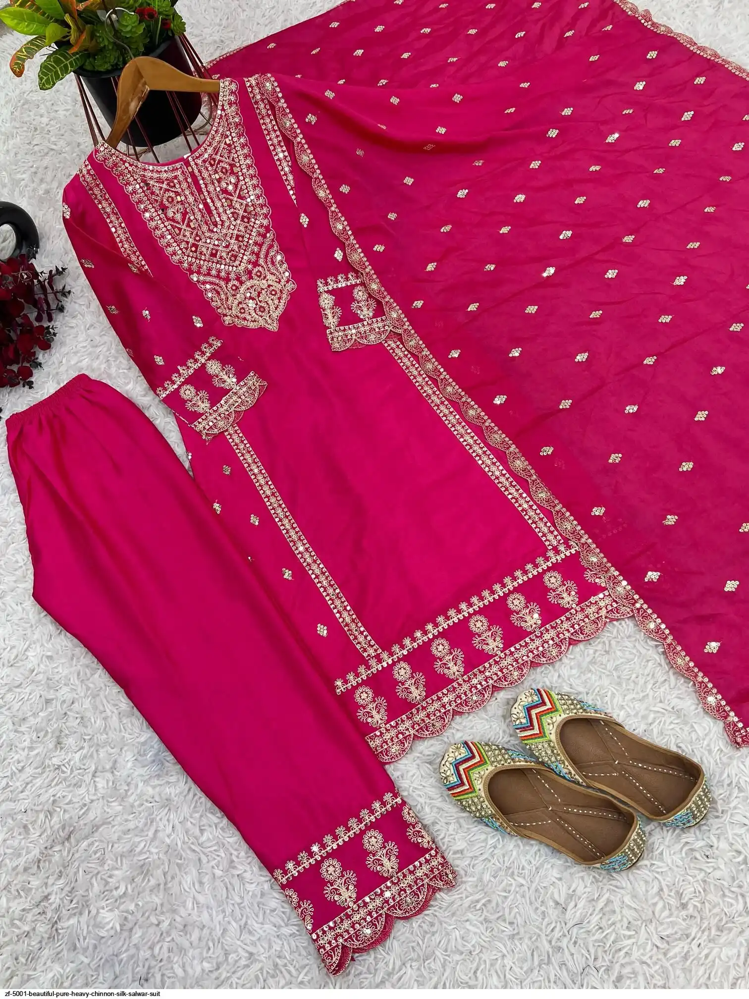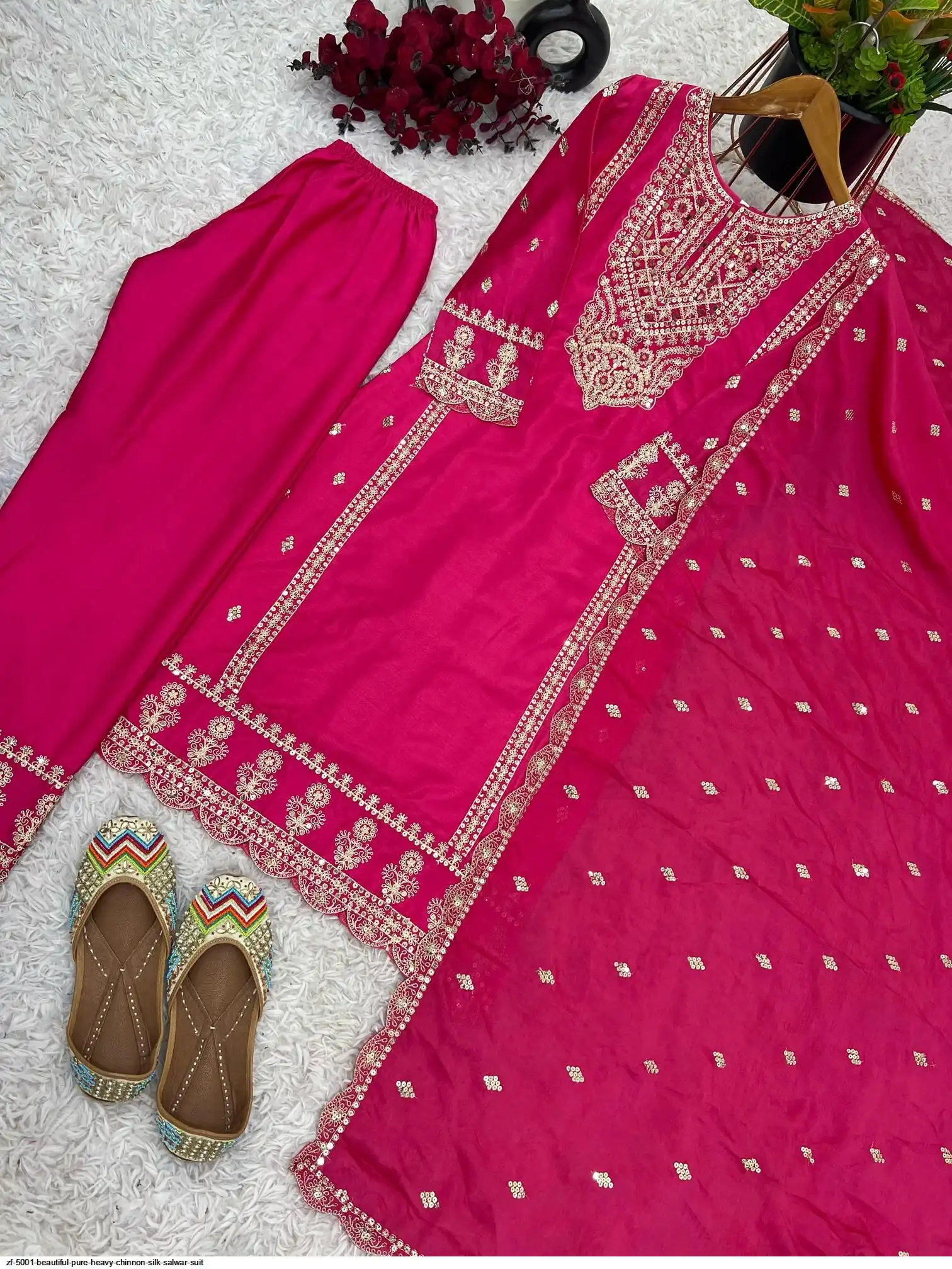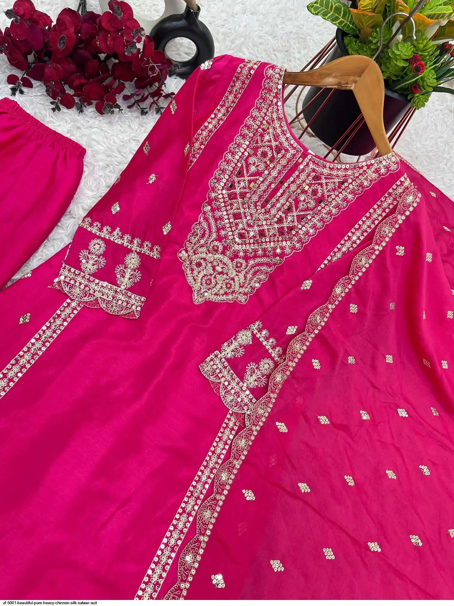 Presenting New Collection Heavy Chinon Silk Top-Bottom And Dupatta Set Fully Stitched Ready To Wear