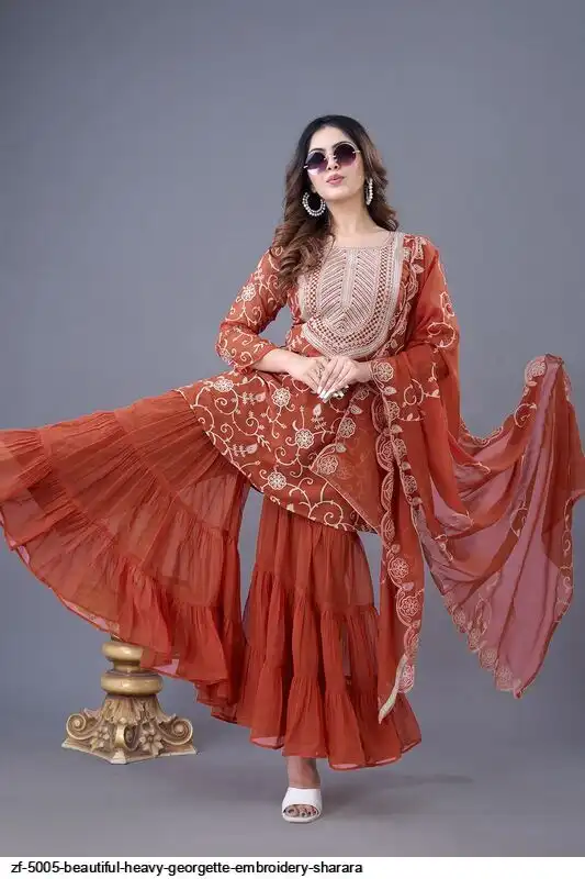 Sharara Fabrics :Heavy Georgette With Fully Ruffle Flair
