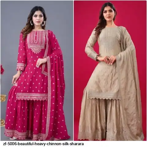 Sharara Fabrics : Heavy Chinon Silk With * Heavy Embroidery Sequence Work With Flair