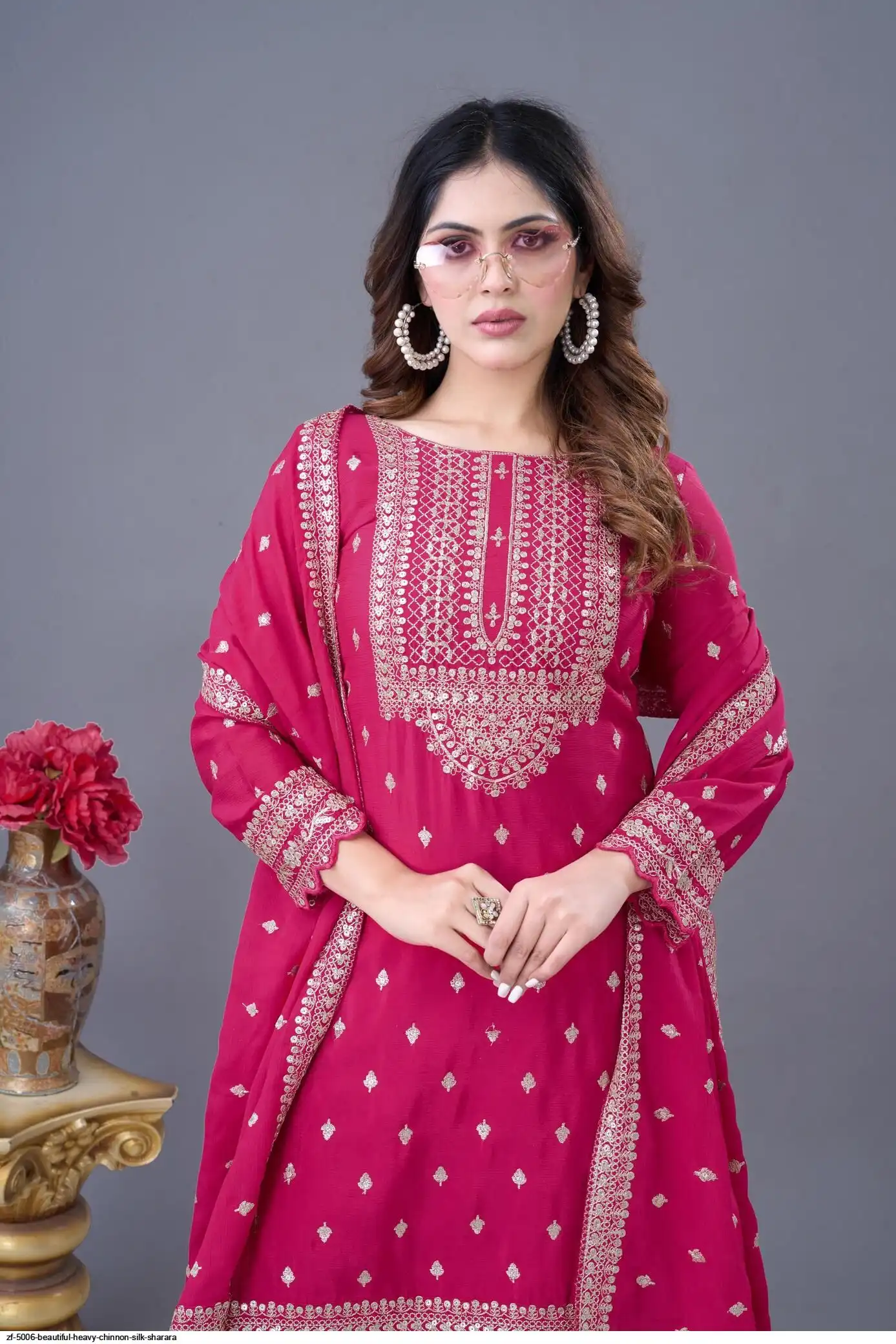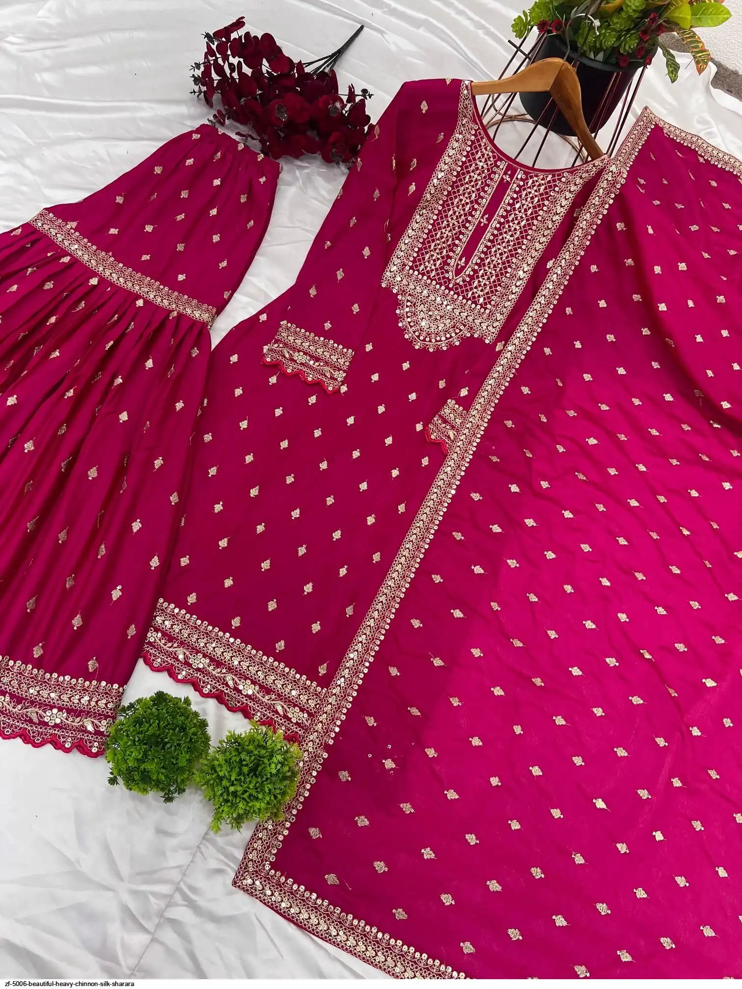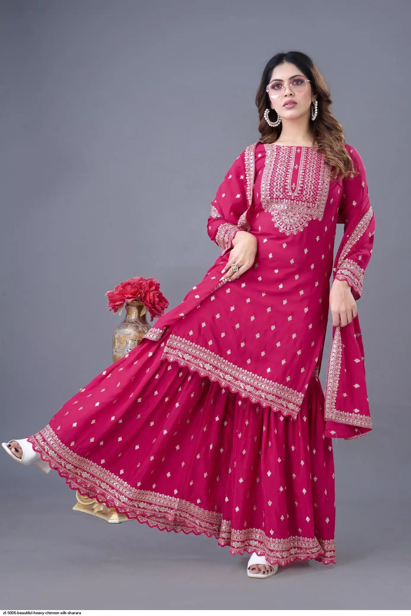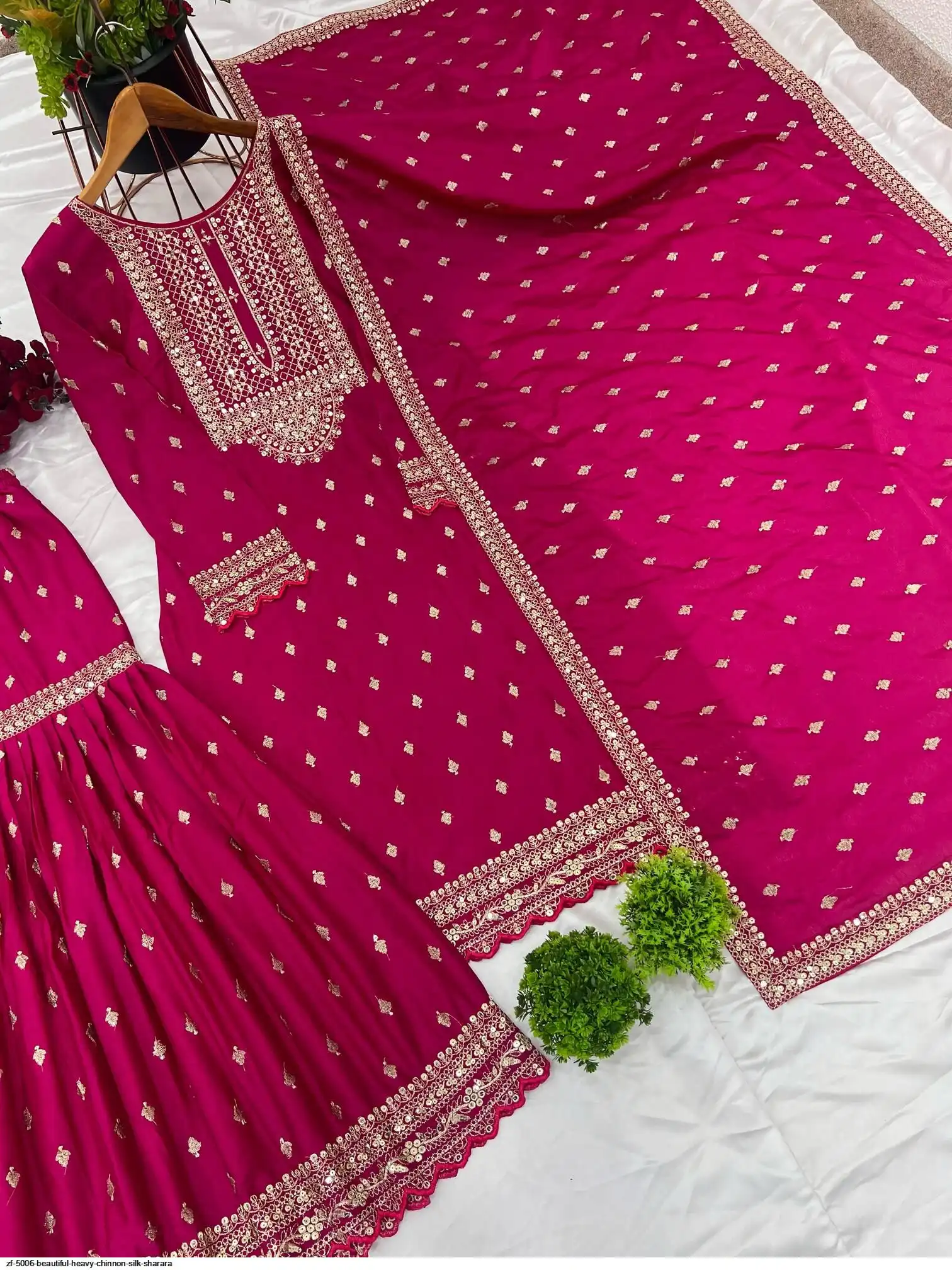 Sharara Fabrics : Heavy Chinon Silk With * Heavy Embroidery Sequence Work With Flair