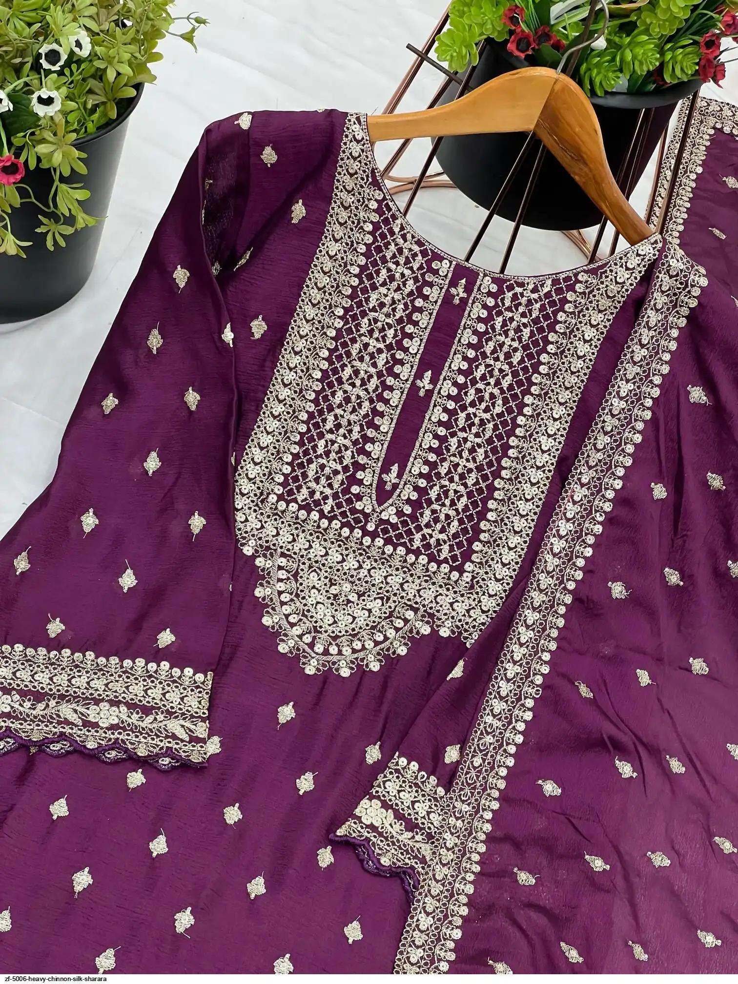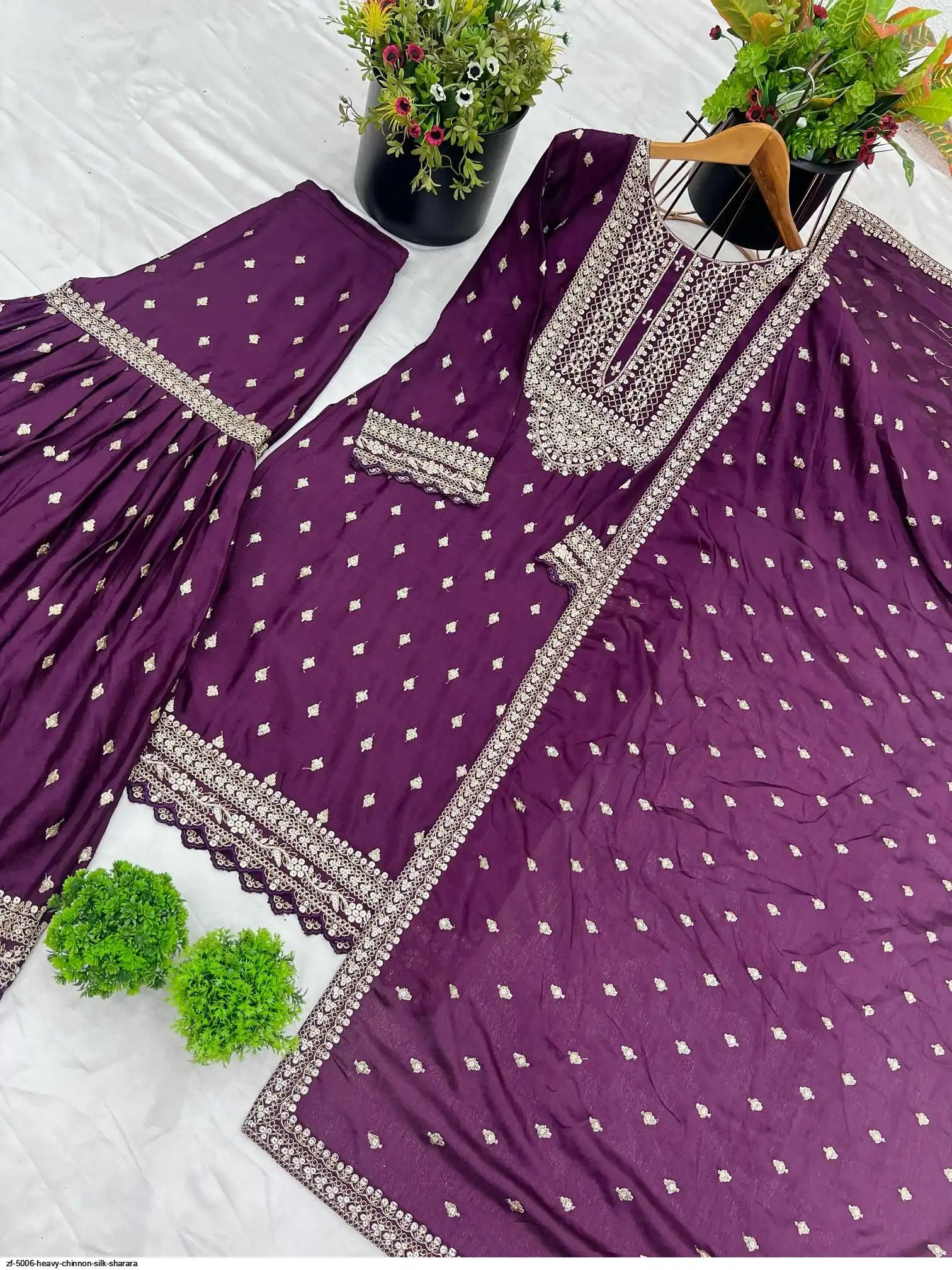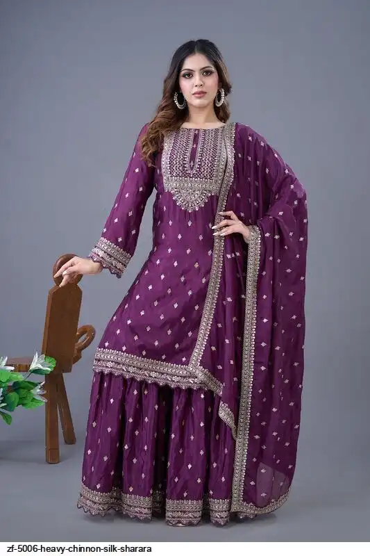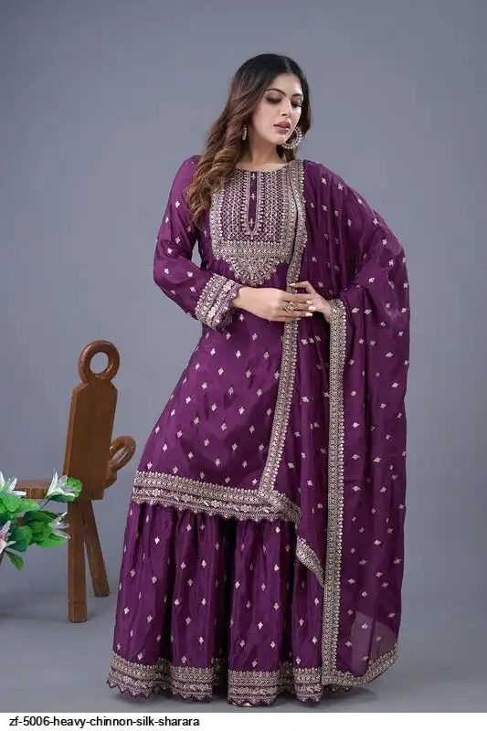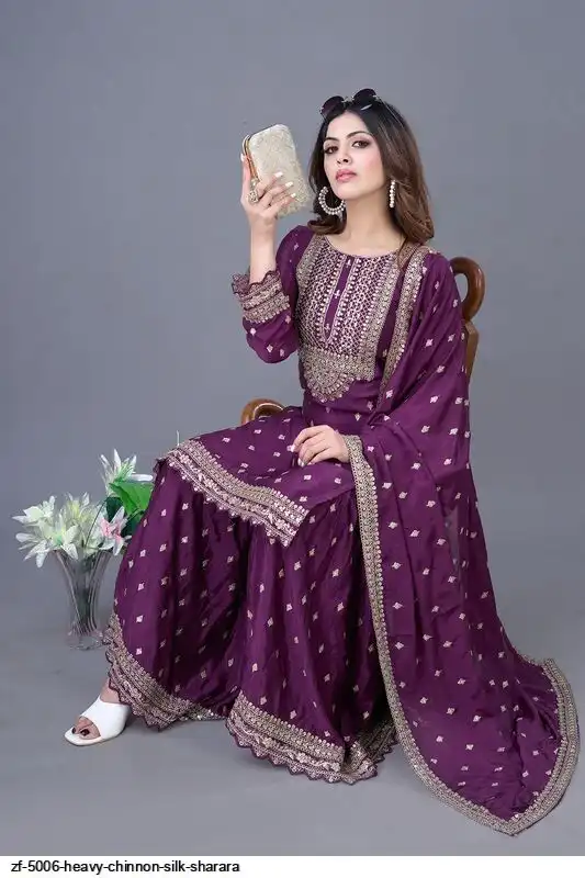 Sharara Fabrics : Heavy Chinon Silk With * Heavy Embroidery Sequence Work With Flair