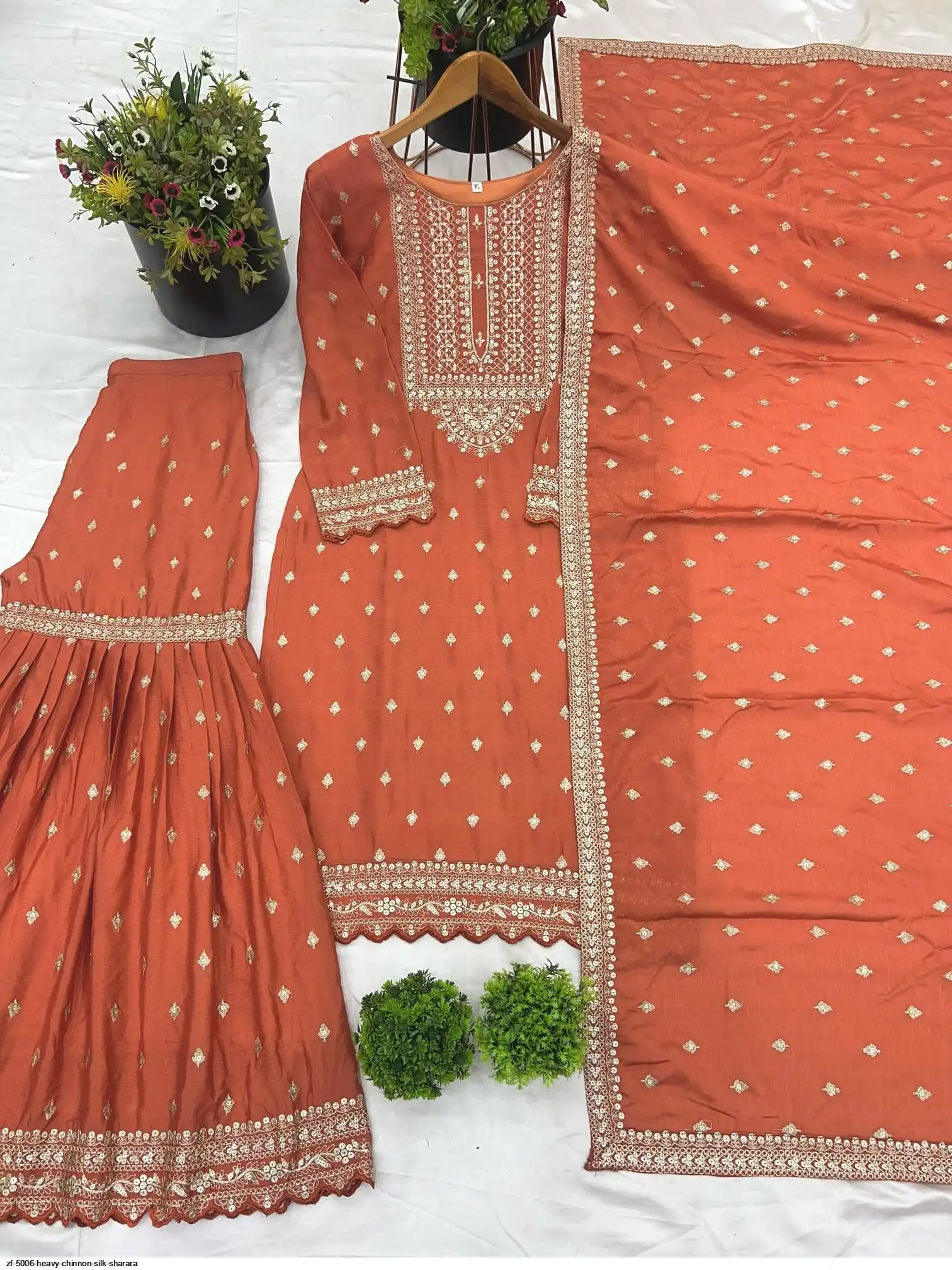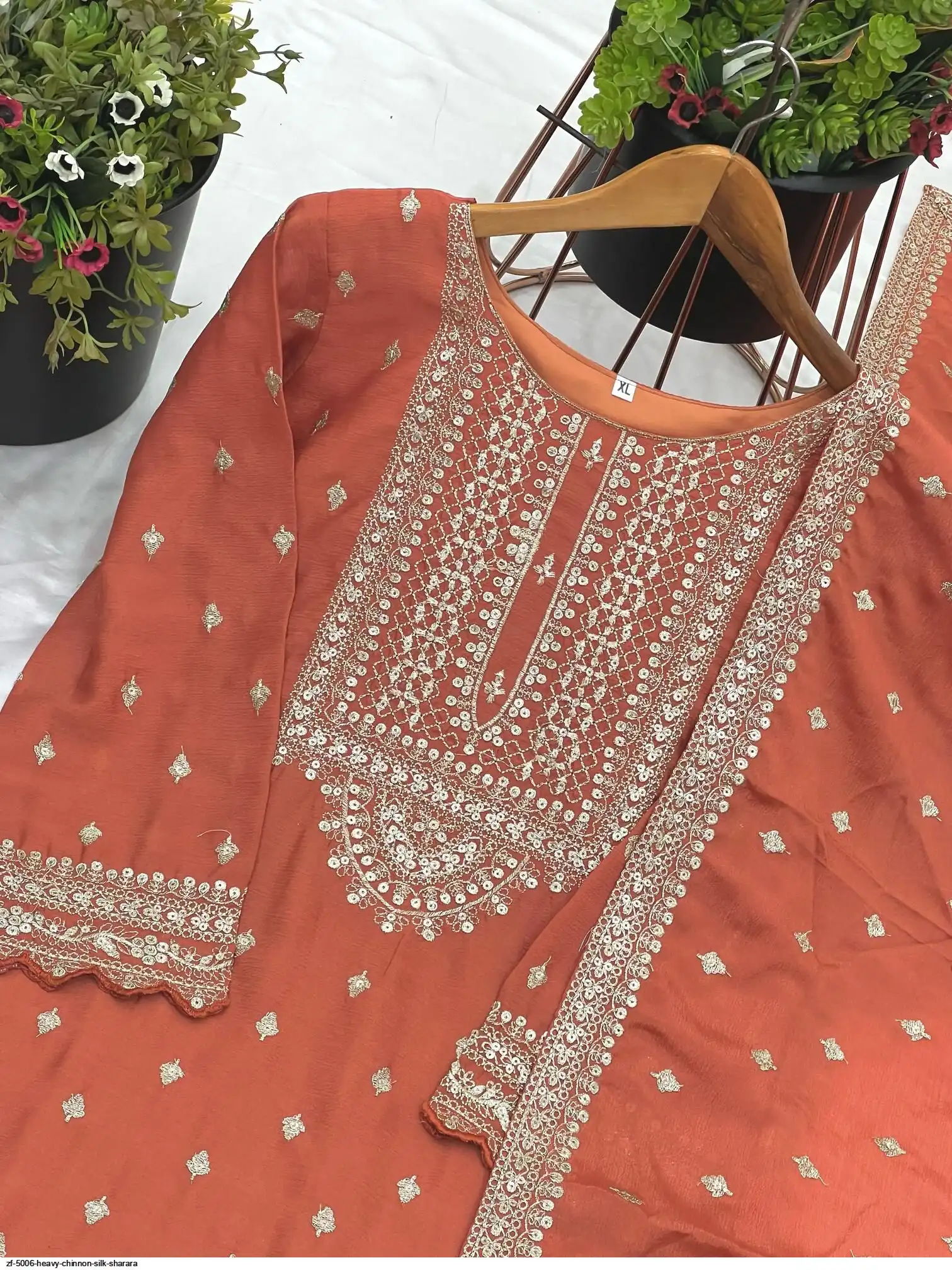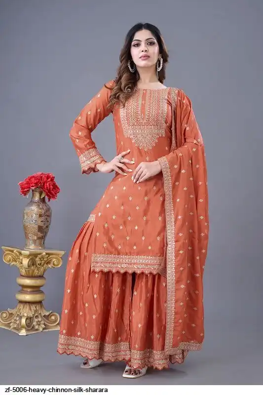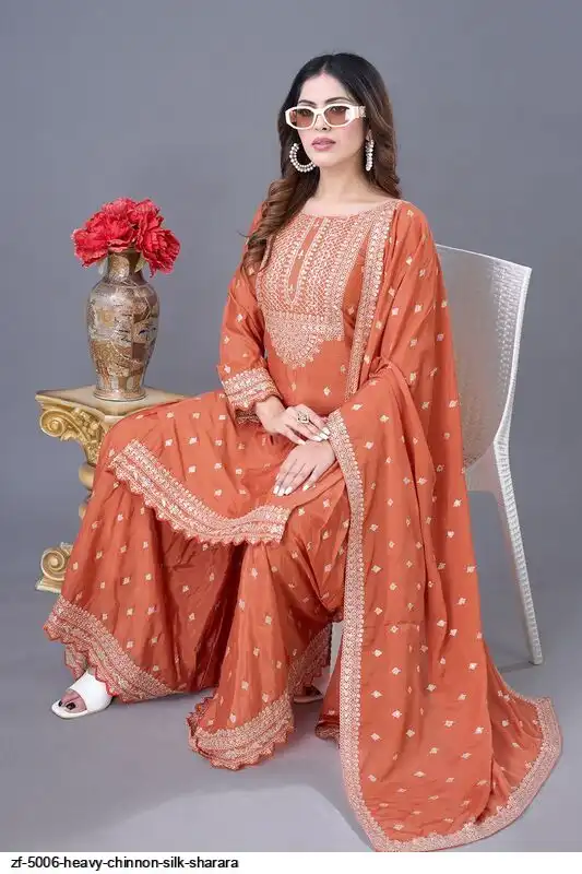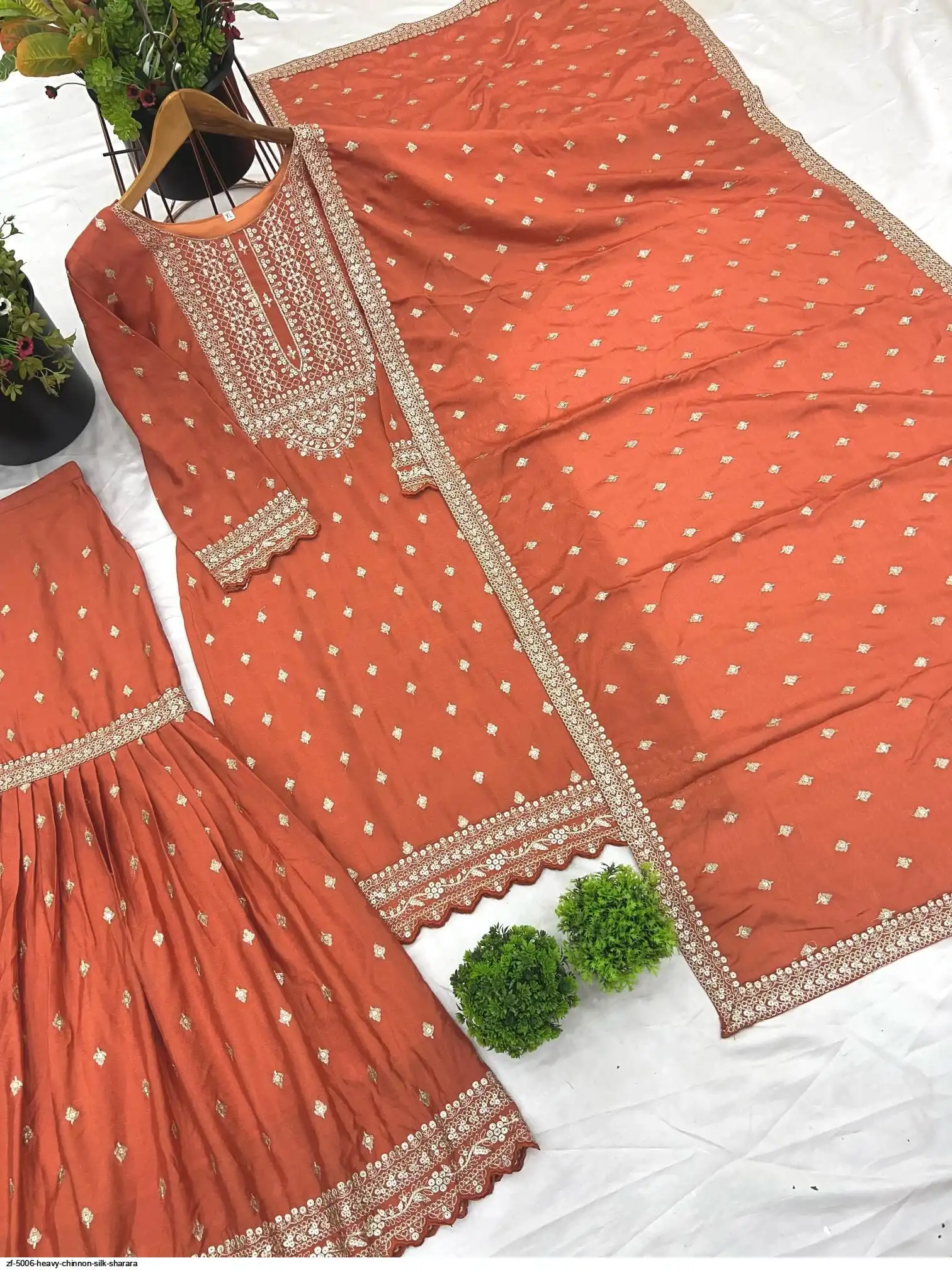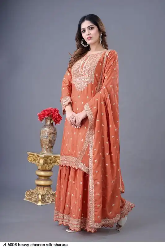 Sharara Fabrics : Heavy Chinon Silk With * Heavy Embroidery Sequence Work With Flair