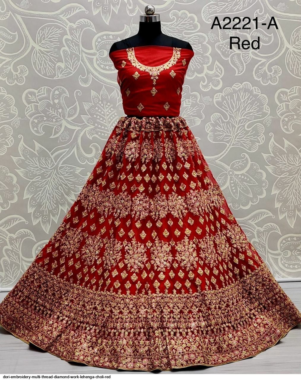 DORI EMBROIDERY MULTI THREAD DIAMOND WORK LEHENGA CHOLI RED